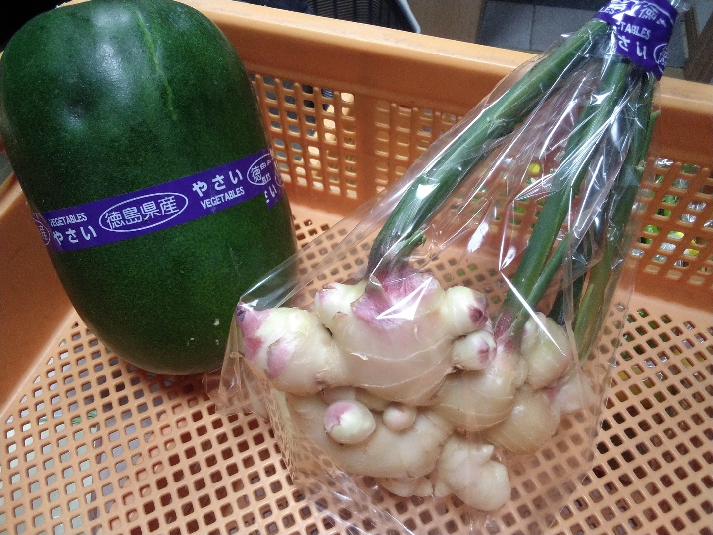 ミニ冬瓜は常温保存、新生姜は冷蔵でなるたけ早くお使いください。