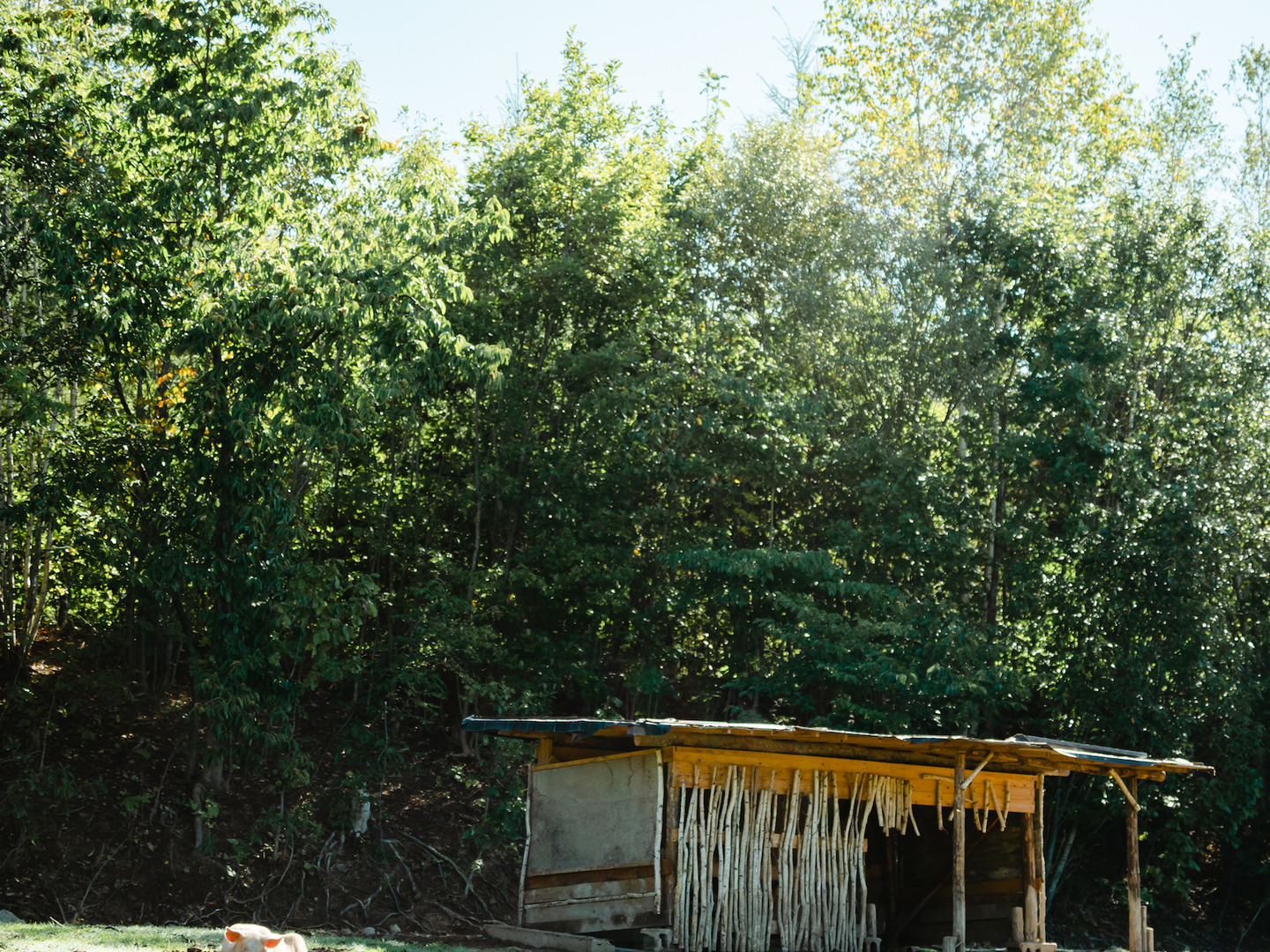 山の斜面に位置する炭豚ファームは、山を登ったり降りたり、森林の中を冒険しております。