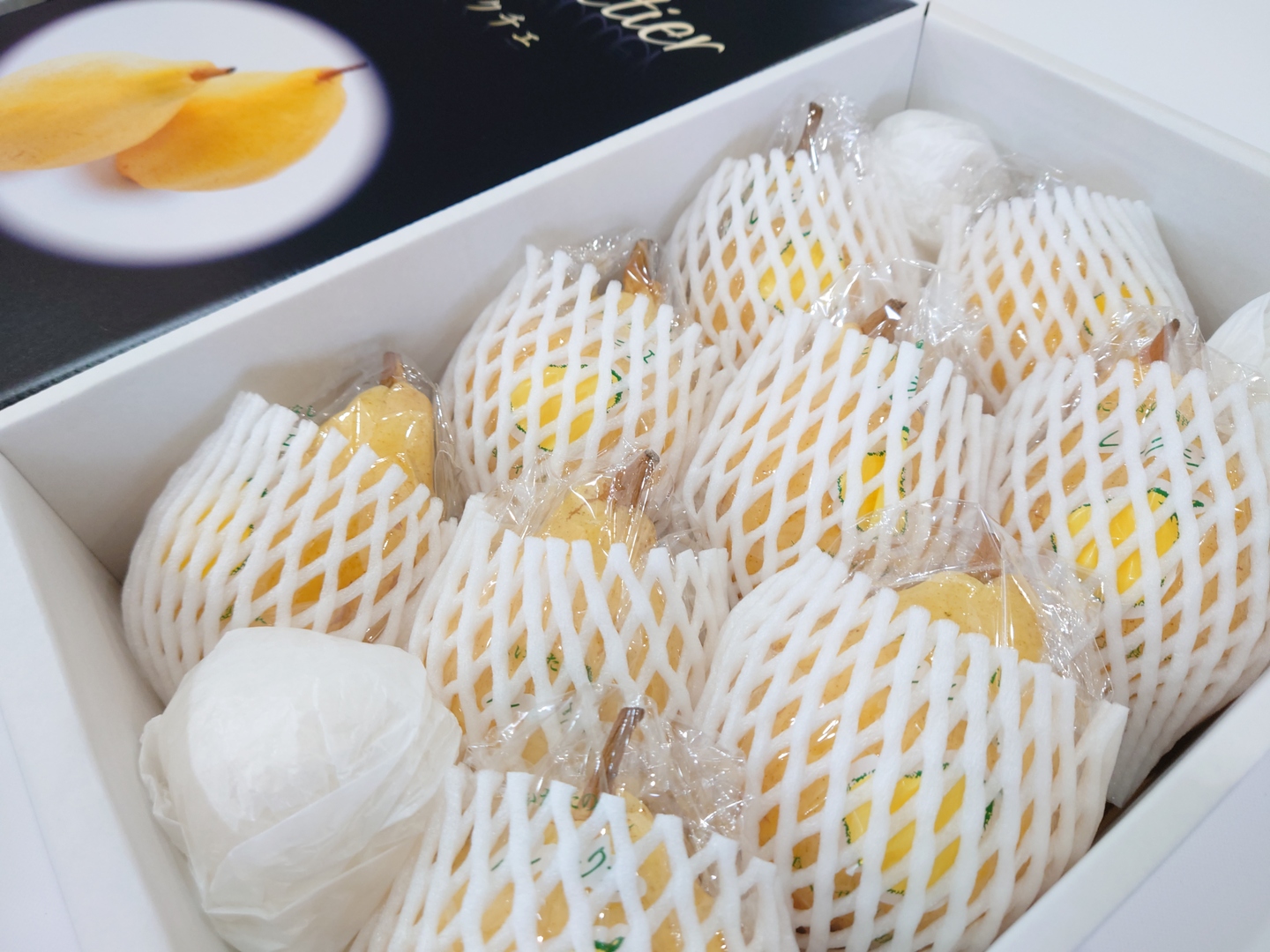 西洋梨は収穫した時点ではまだ硬く、香りも少ない状態ですが、収穫後に追熟期間を経て美味しい果実になります。