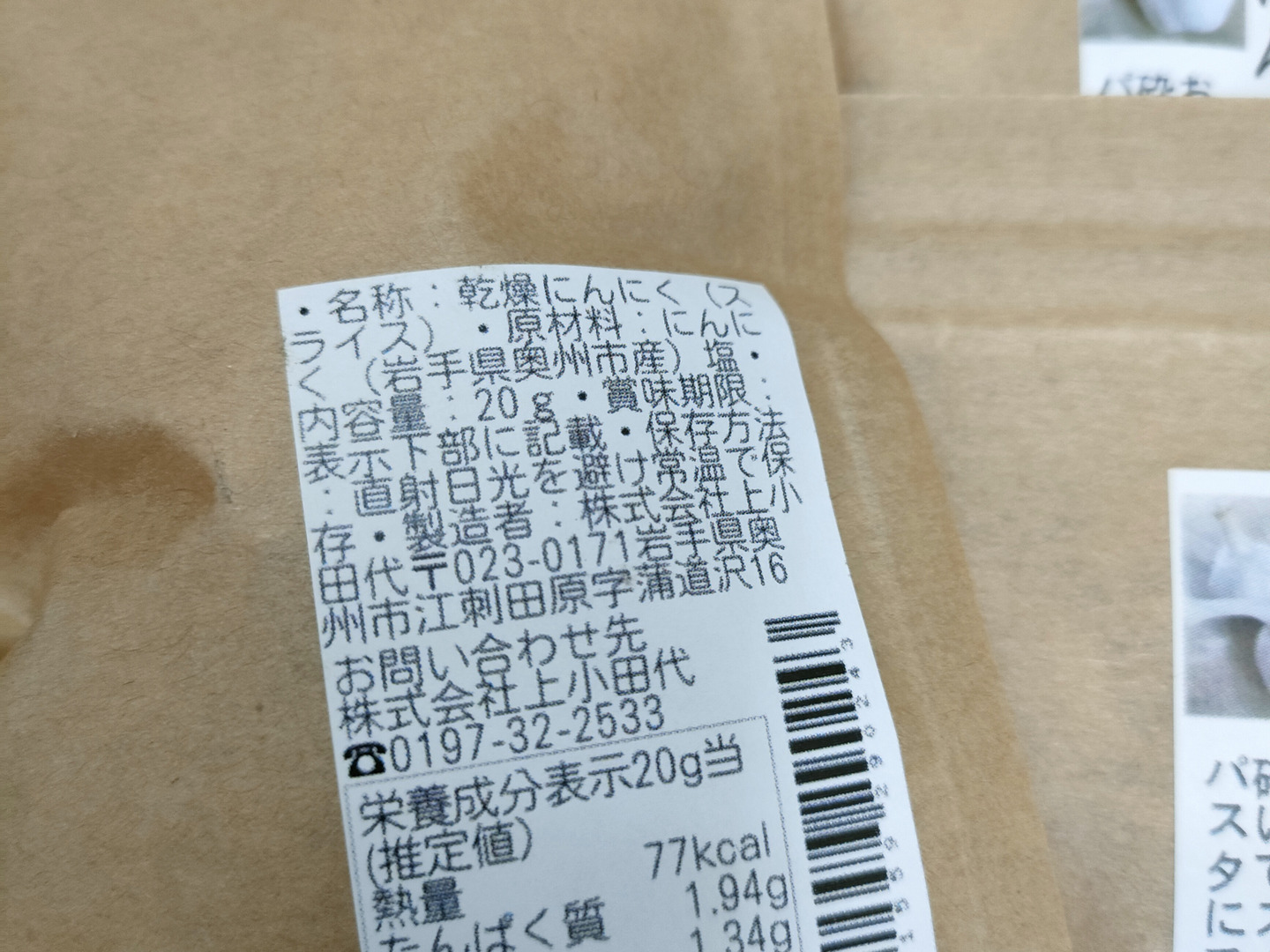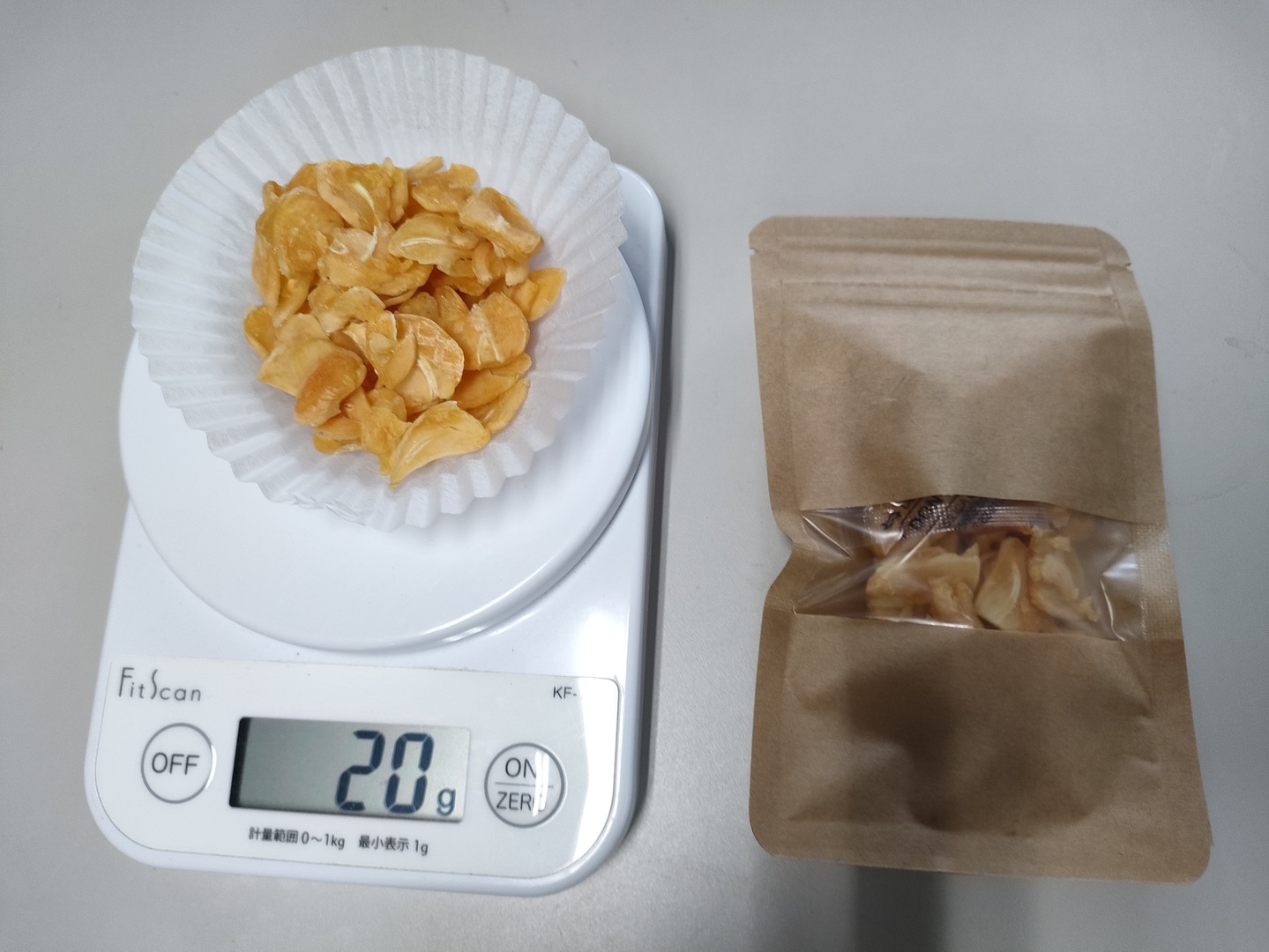 20gニンニクチップはMサイズにんにく約1.5個分を使用しています。