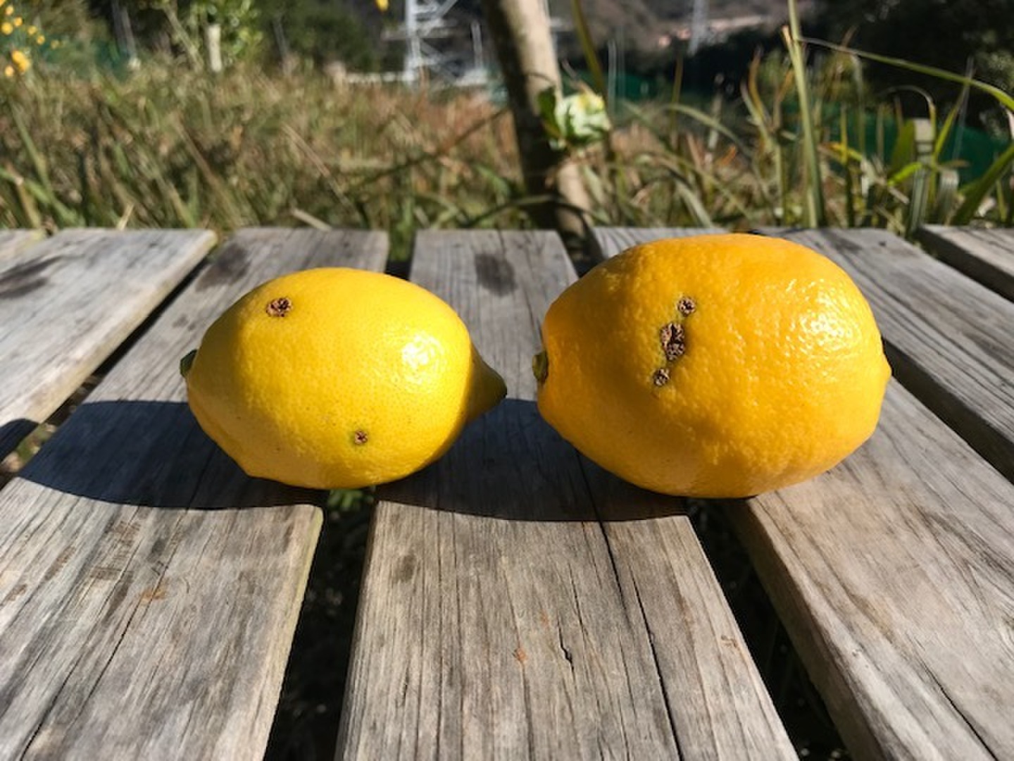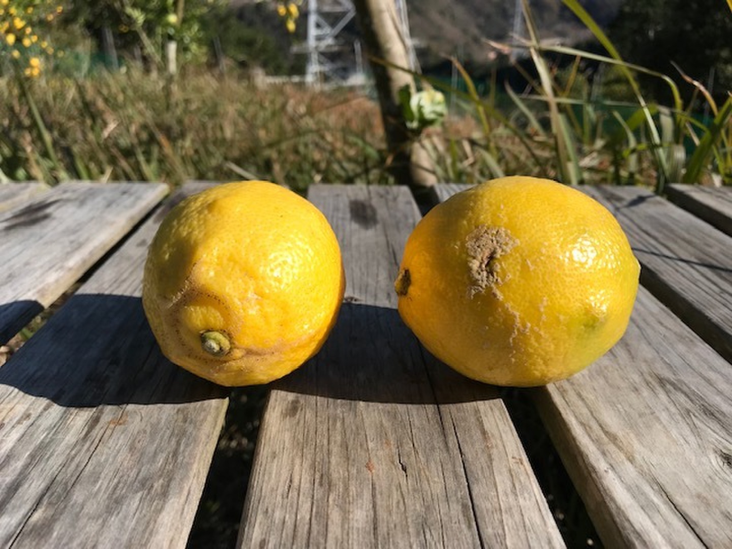 表面に少しキズや黒点等があるレモン。中身は何ら問題ありません。
