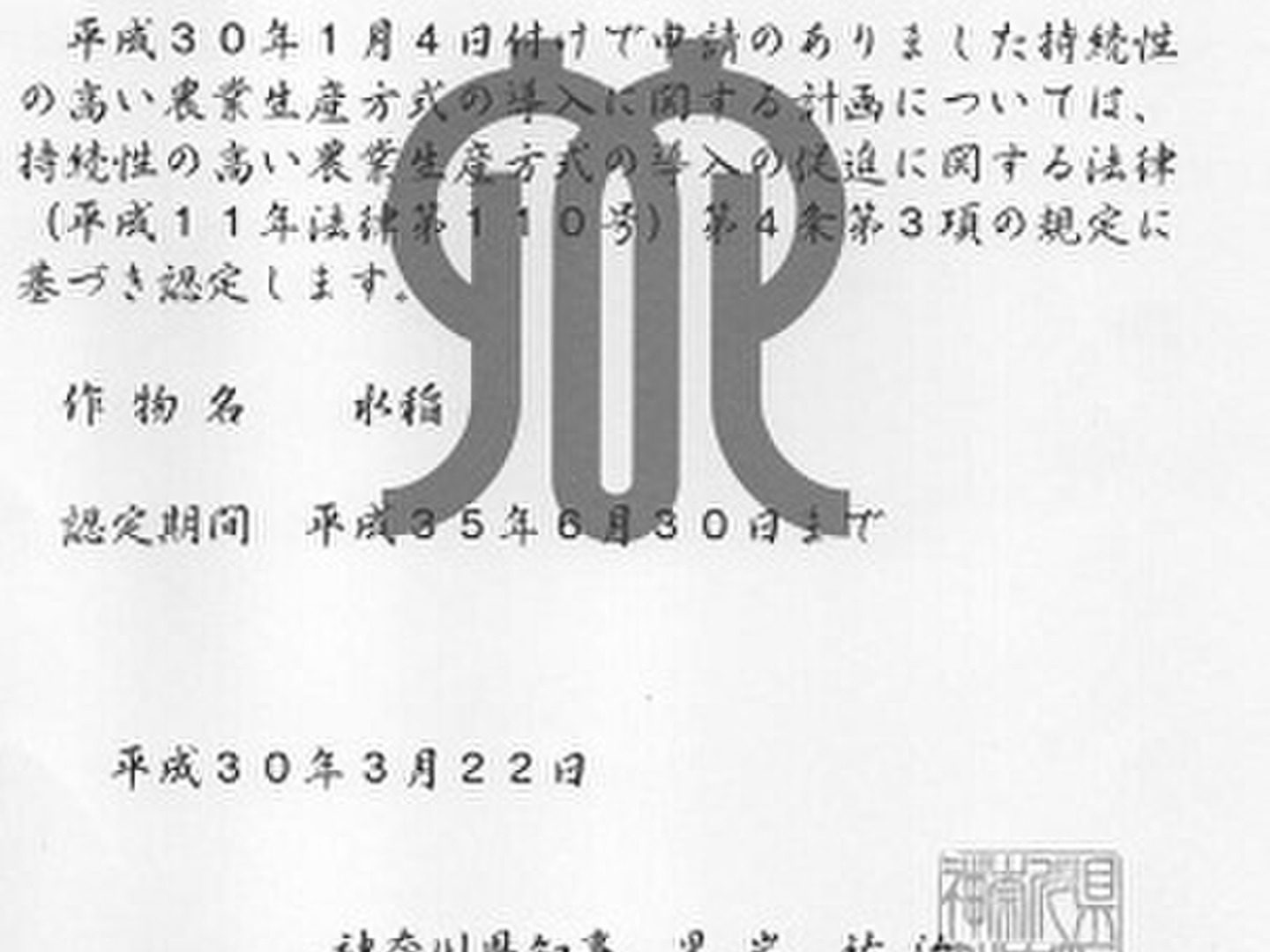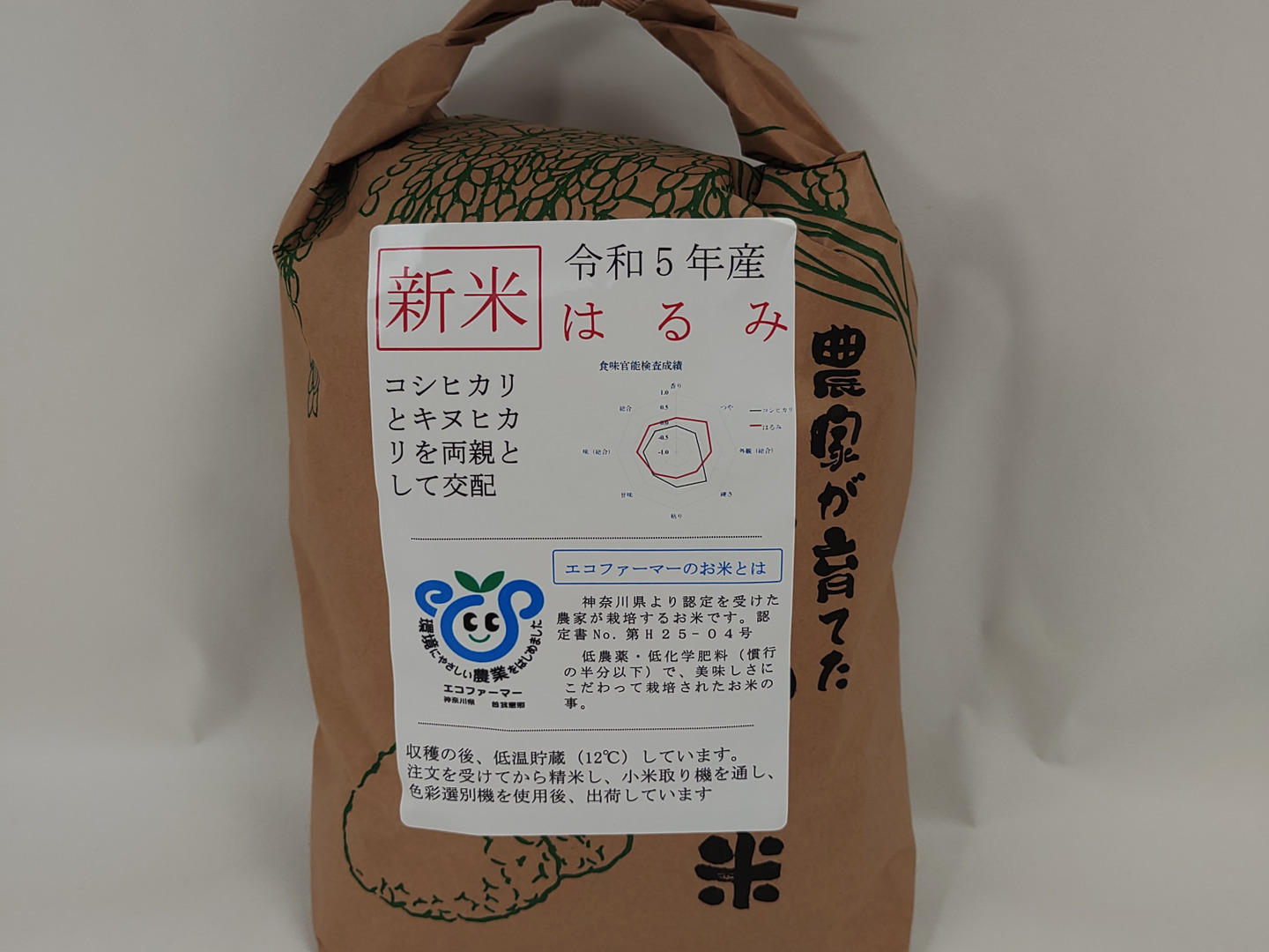 環境に優しいエコファーマーを実践しています(農薬:慣行の50%以下 窒素:慣行 の50%以下)