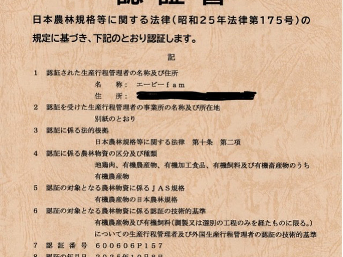 - 有機JAS認証