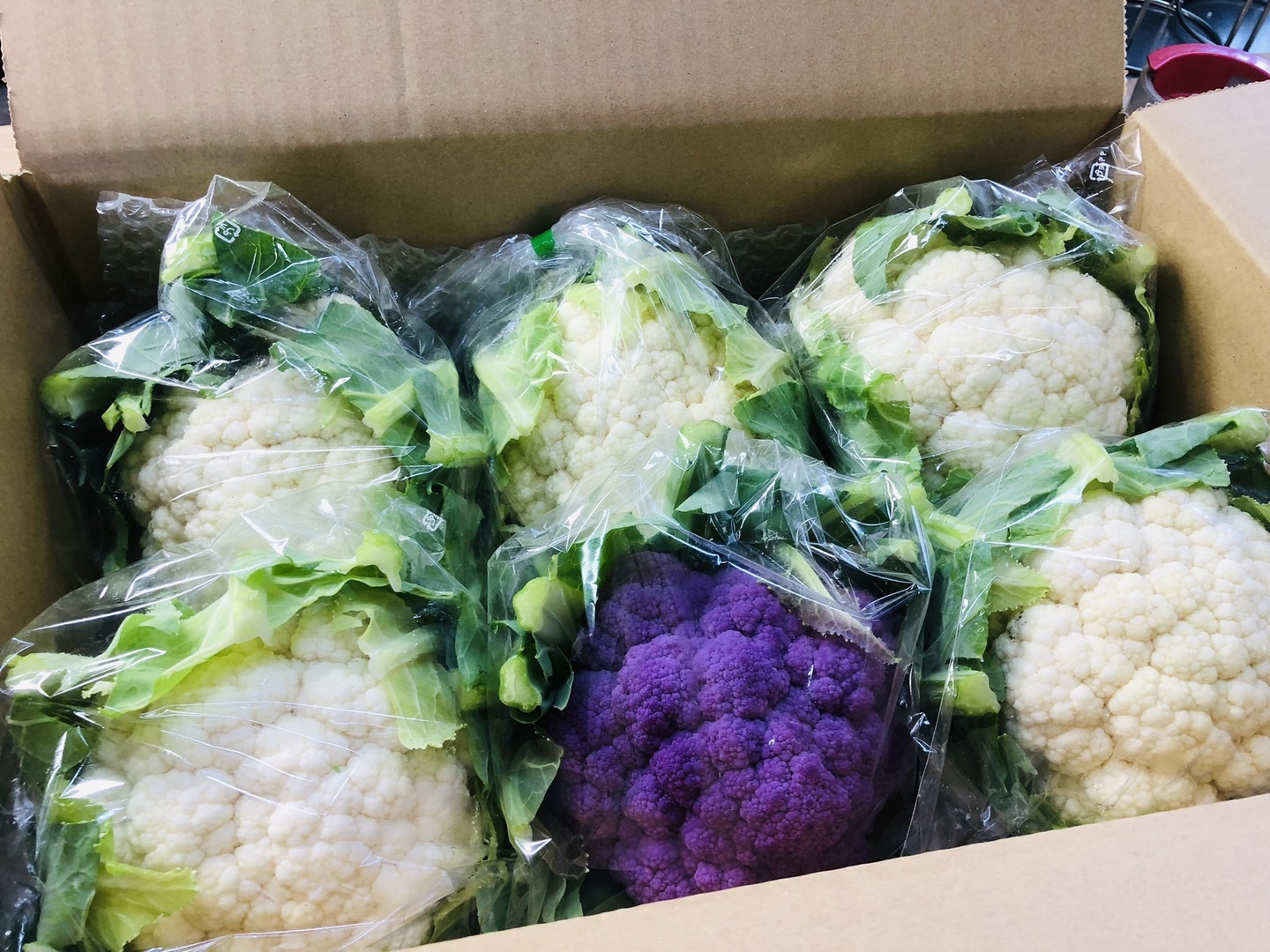 鮮やか!【定番の白に紫も入ります】カリフラワー 村上市より直送!畑のダイヤモンド(6個入り)