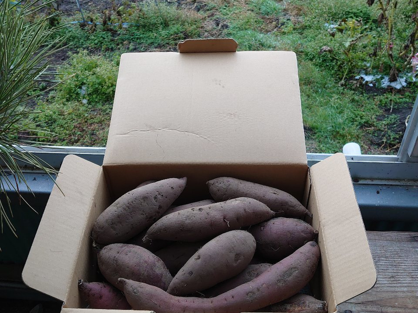 サツマイモは、涼しい8~15℃の場所に保存すると長もちします。凍ると腐りますので、寒いときは毛布で包むなどして下さい。