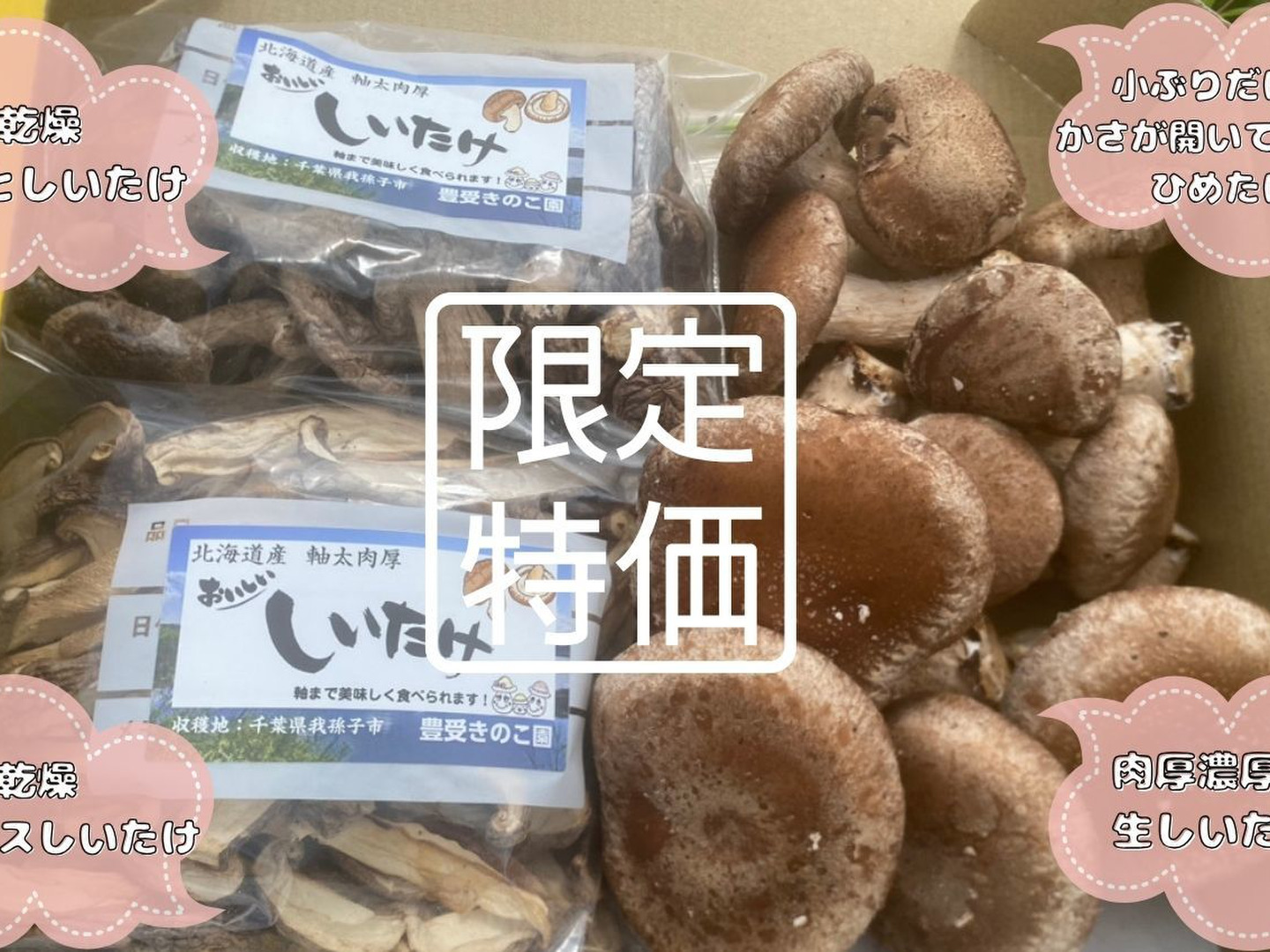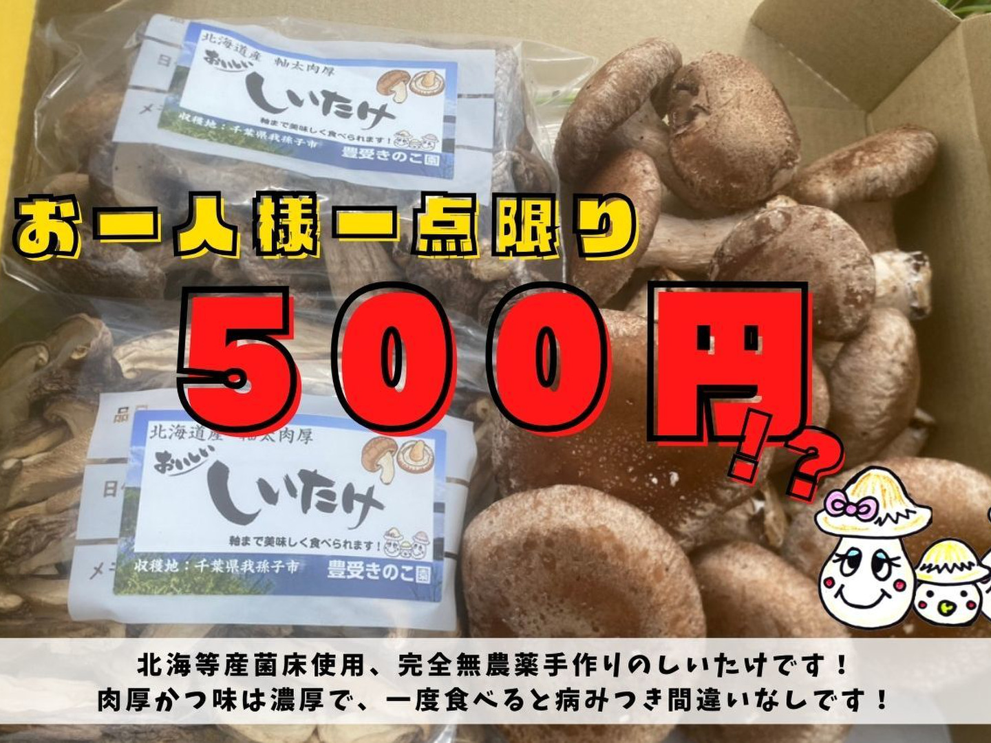 豊受きのこ園の人気しいたけを少量ずつお試し頂ける大変お得なセットをワンコインでお届け!!ワンコインセットです!