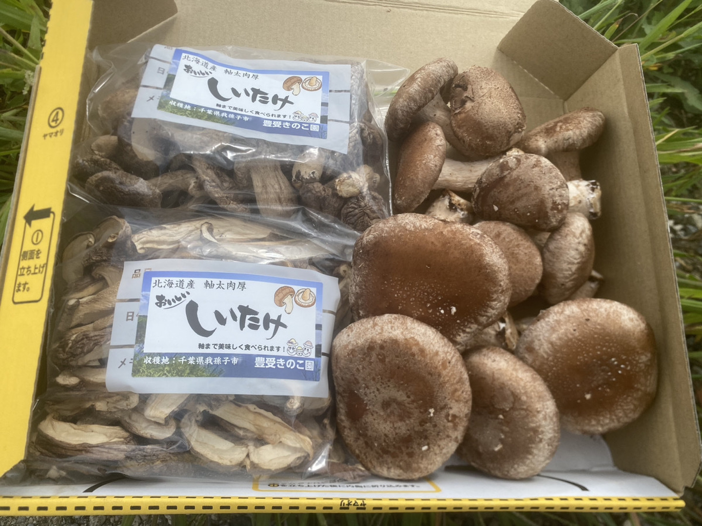 少しかさがひらいてしまったり、他のしいたけに押されて形はまんまるでないものもあるけれど濃厚な味わいは健在!