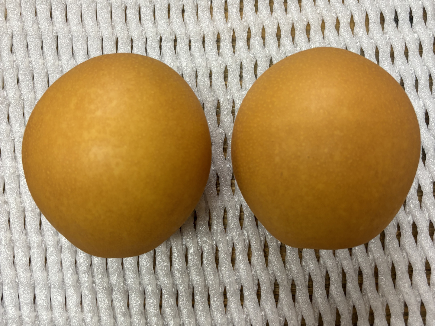 酸味はほとんど無く、新高の甘さと豊水のキメ細かさをしっかり受継いでいます。