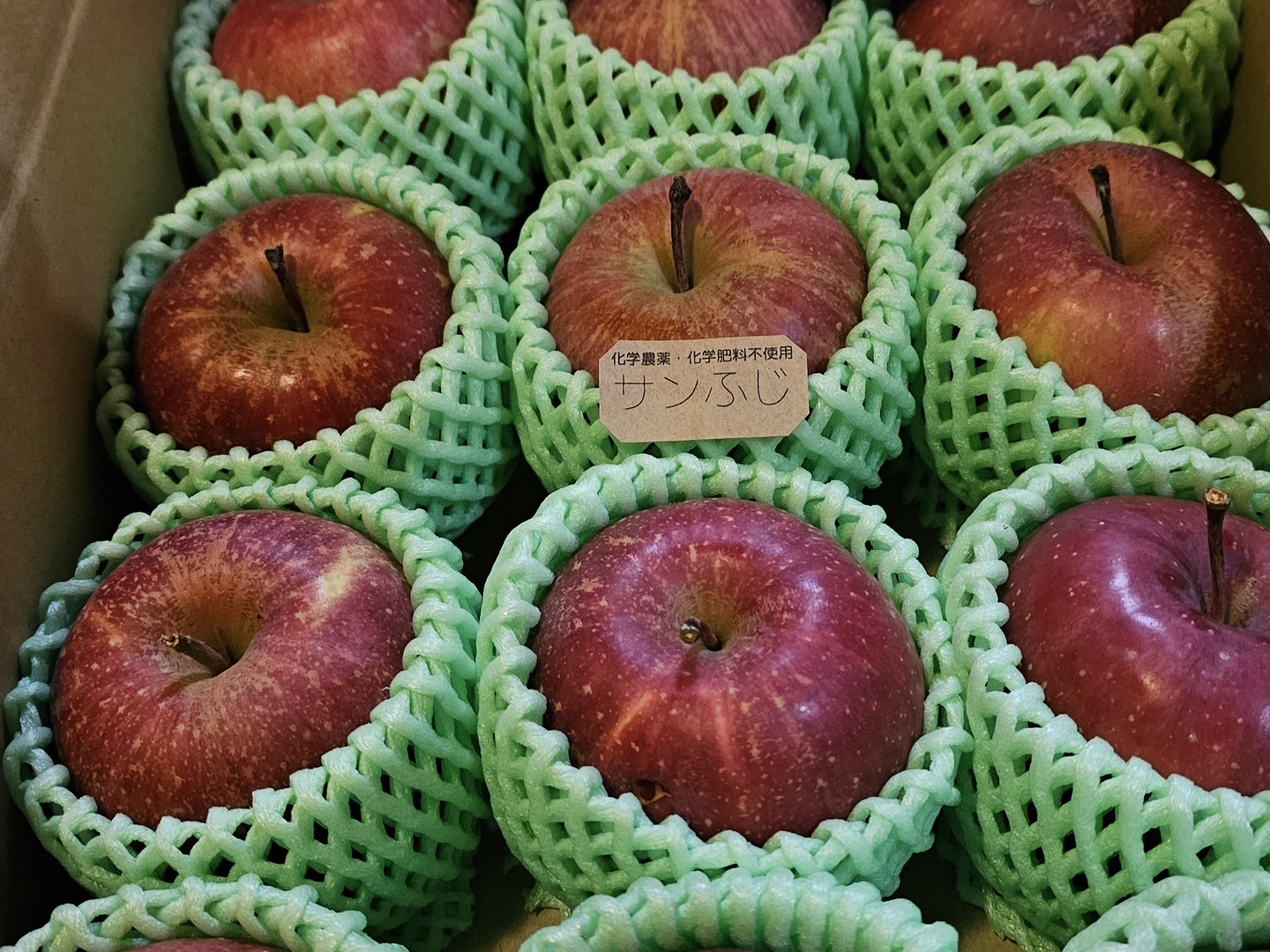 ・品種はサンふじ。平成27年に特別栽培(化学農薬・化学肥料不使用)を認証してから、安定した支持をいただいてます。
