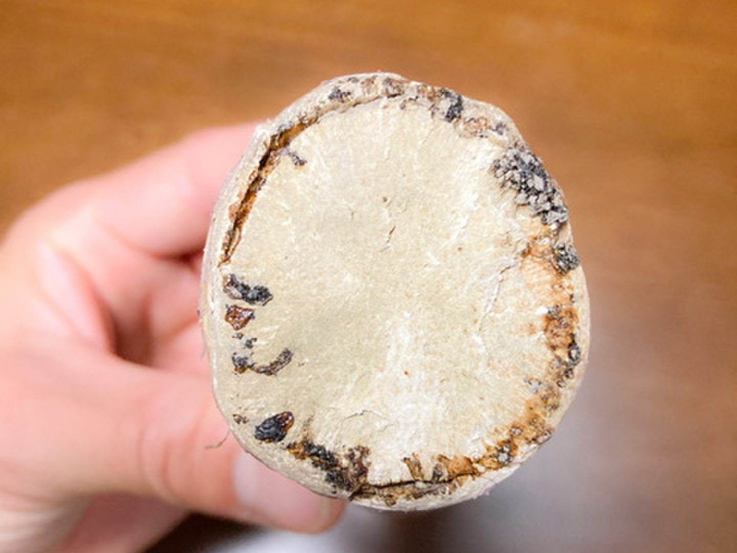 写真のように、切れた箇所はすでに修復しコルク状になっています。黒い塊はサツマイモの樹脂成分が固まったものです。