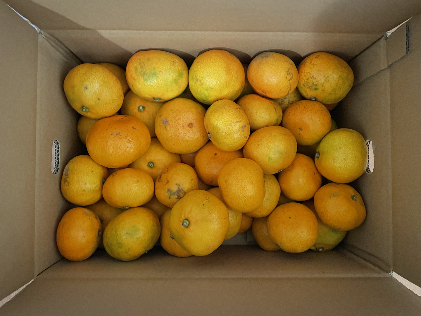 【11月18日~23日収穫】見た目は悪いが味は良い。【選果落ち】早生ミカン5kg。サンプル糖度9.6~11.2度