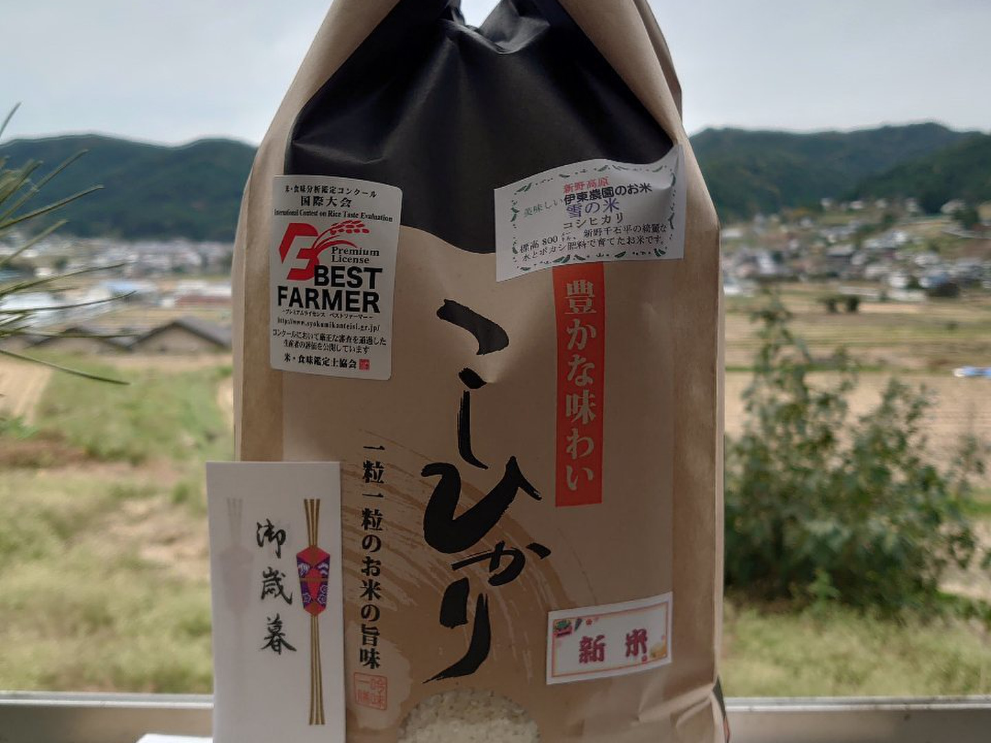 - 新野高原の涼しい気候と綺麗な水で育てたコシヒカリです。