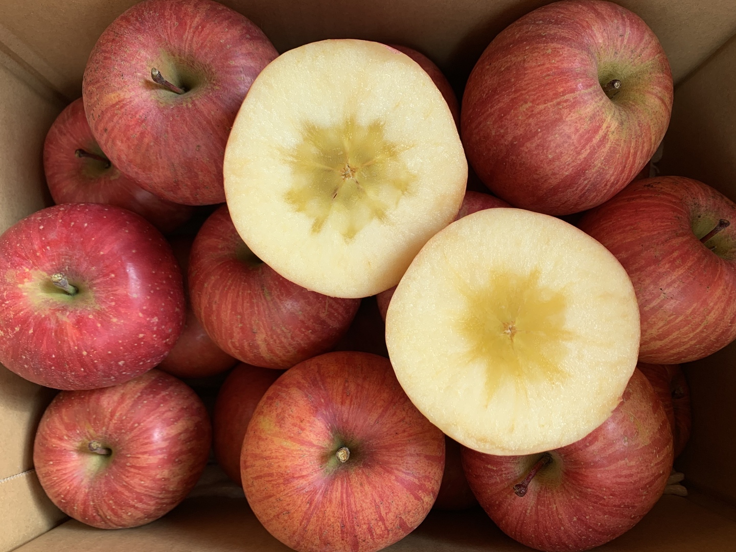 サンふじと呼ばれるりんごは、もともと無袋で栽培を始めた山形県が発祥の地であり、太陽の光(サン)を充分に浴びたふじりんごは甘く蜜が入ります。