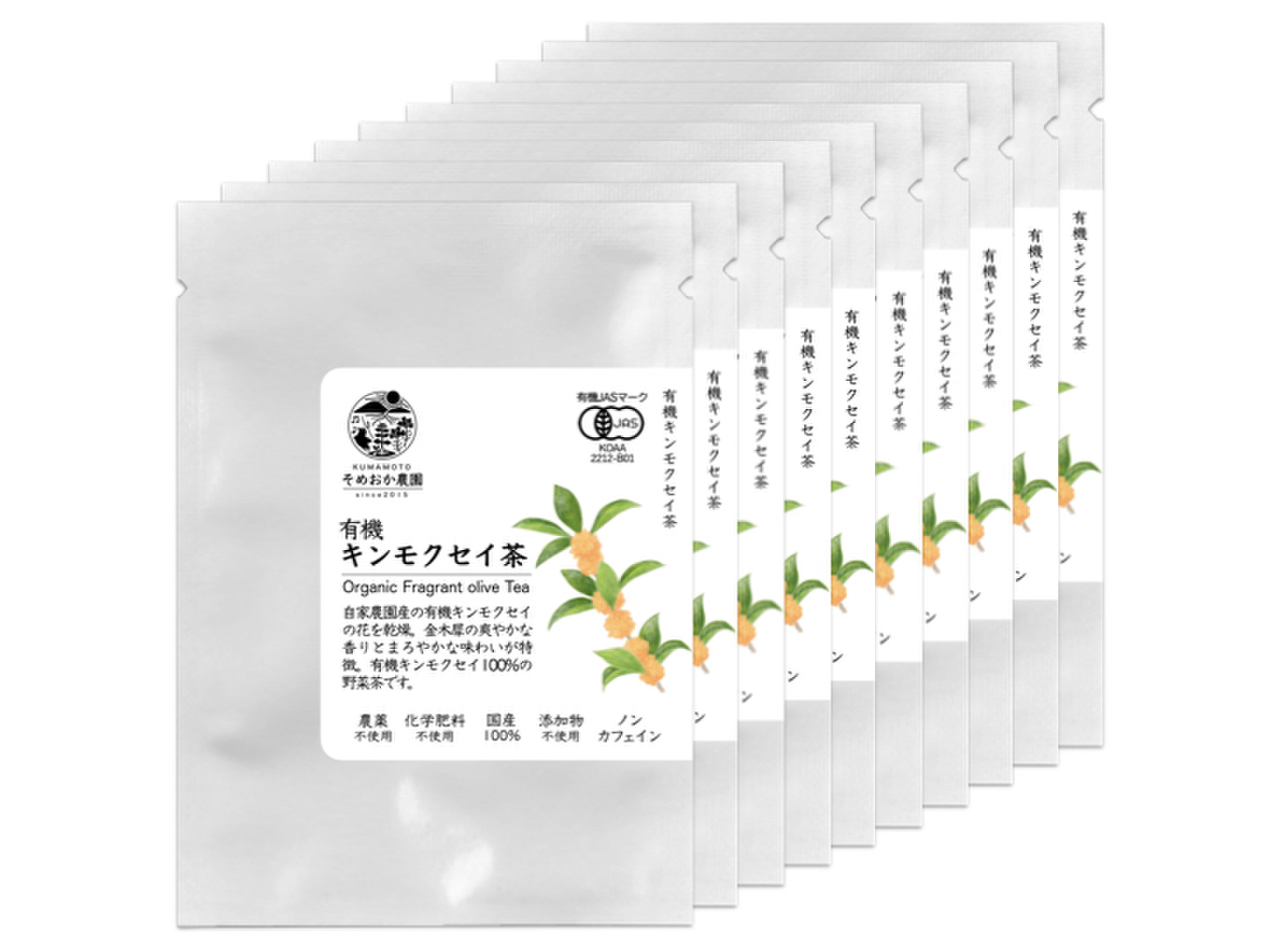 自家農園産の有機キンモクセイの花を乾燥。金木犀の爽やかな香りとまろやかな味わいが特徴。有機キンモクセイ100%の野菜茶です。