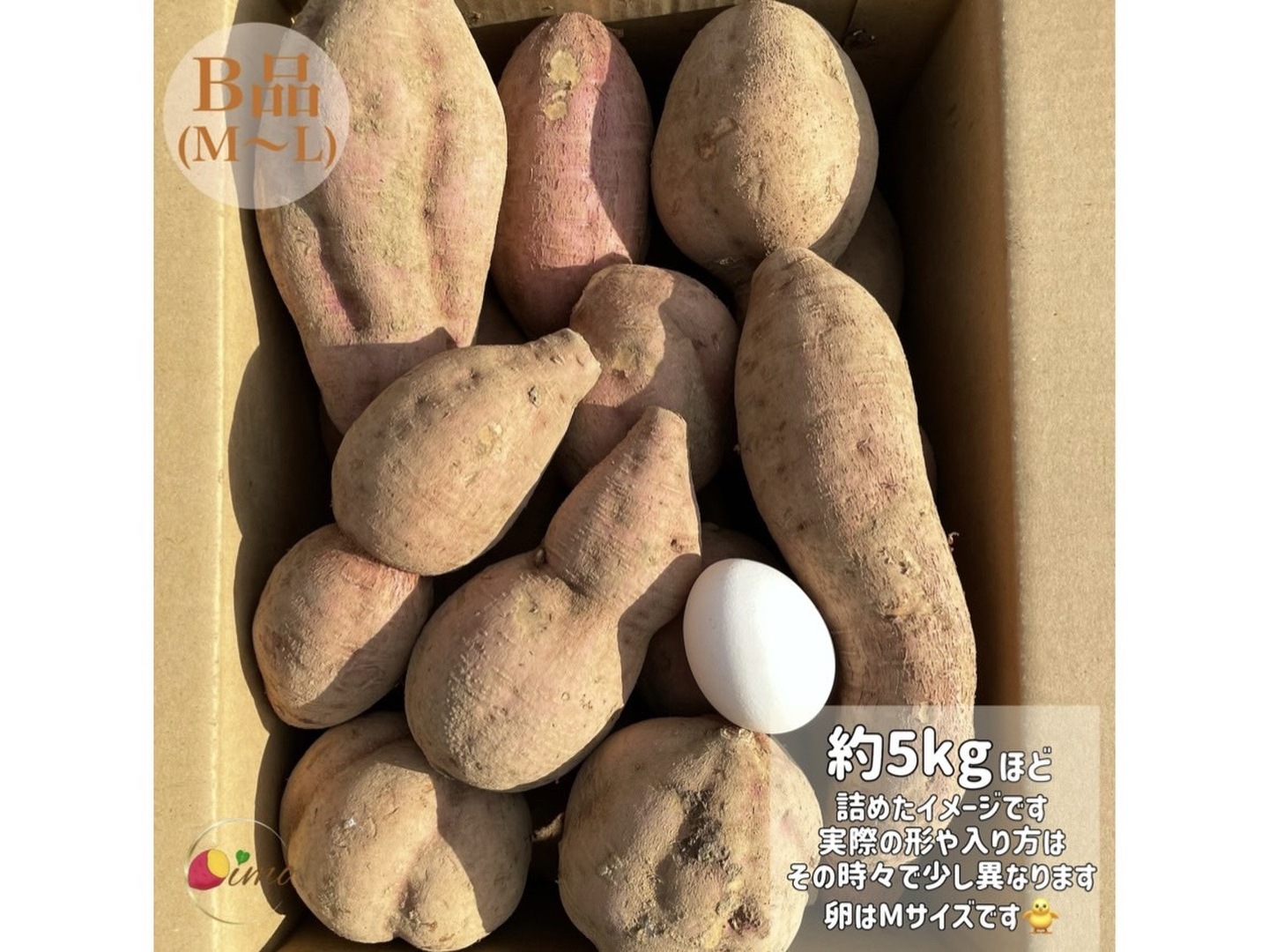 B品とは、表面に少し皮むけや傷があったり、形が細長かったりと、見た目にちょっと個性のあるお芋のことです。