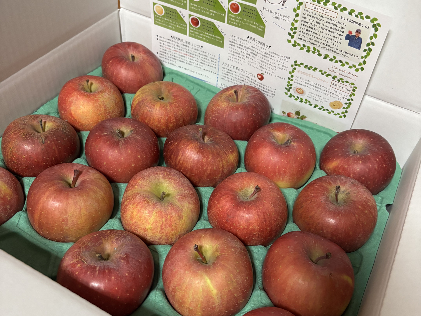 形が悪いもの、サビ、キズ、おせ、つる割れ、小玉などが入ったものになります。見た目ではなく鮮度や味重視のりんごです!是非ご自宅用にどうぞ!