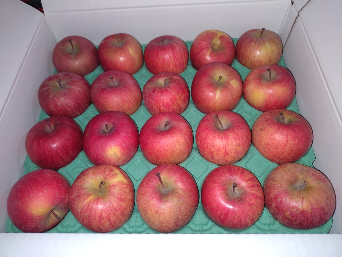 12月に収穫し、スマートフレッシュにて保存したりんごを5kg用の箱に入れてお届けとなります。
