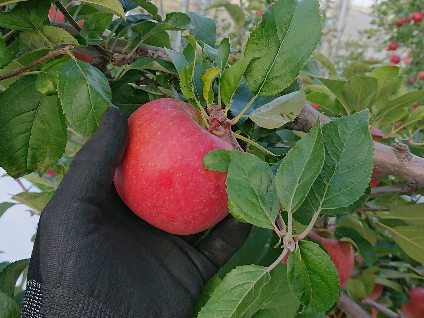 葉取らずなので、太陽の恵みを沢山に浴びて赤く色づいた綺麗なりんごです🍎
