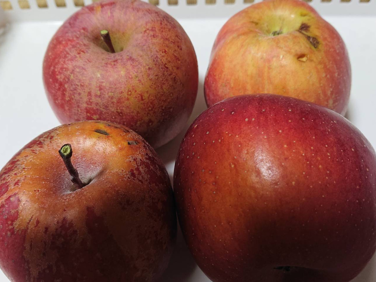 訳あり品「今年もさまざまサンふじ掲載します」約10kg(サビ、枝傷、日焼け、割れ、小さい等々です。でも美味しいですよ。)スムージーやジュースそのままでも。お買い得かと存じます。