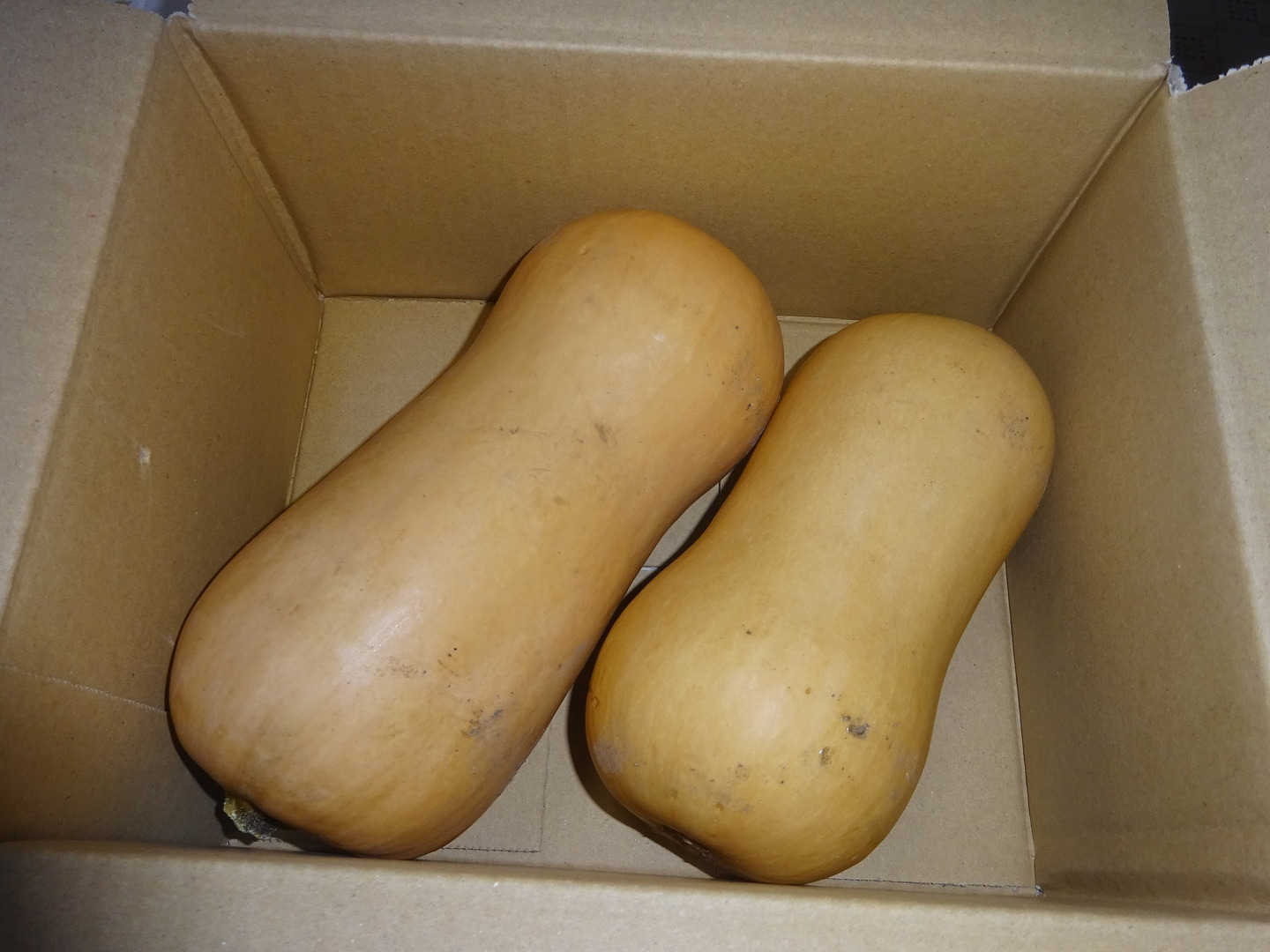 ★60サイズ・ダンボール箱に1.5キロ前後(個数で1個前後)のバターナッツかぼちゃを収納して発送します。