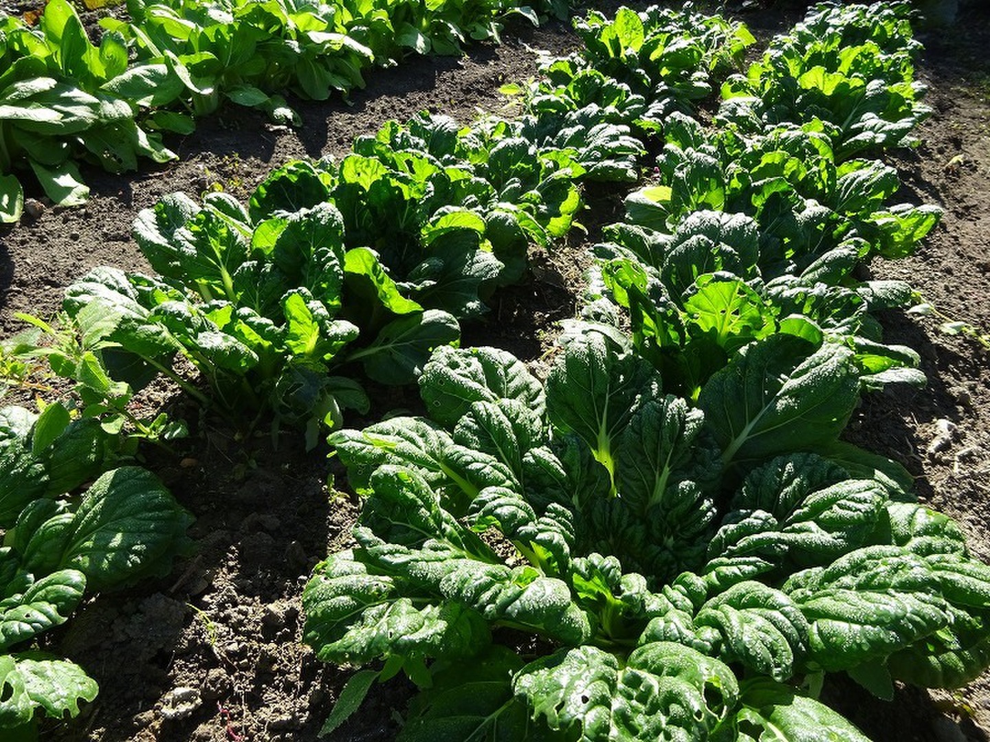 今年は種まき時期が暑く虫が活発で芽が出てもすぐ食べられて無くなるので、やむなくアブラナ科の野菜にはBT剤(天敵微生物)を発芽時期に1回のみ使用しています。(節減率80%以上)