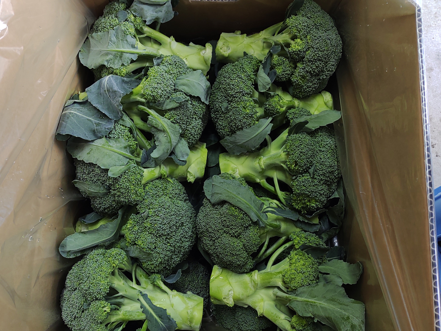 タカミノヤサイのブロッコリーは収穫後すぐに冷蔵庫で保管しています。発送直前まで野菜用冷蔵庫で保管したのち、配送直前に冷蔵庫からクール便の配送車に積み込みます。