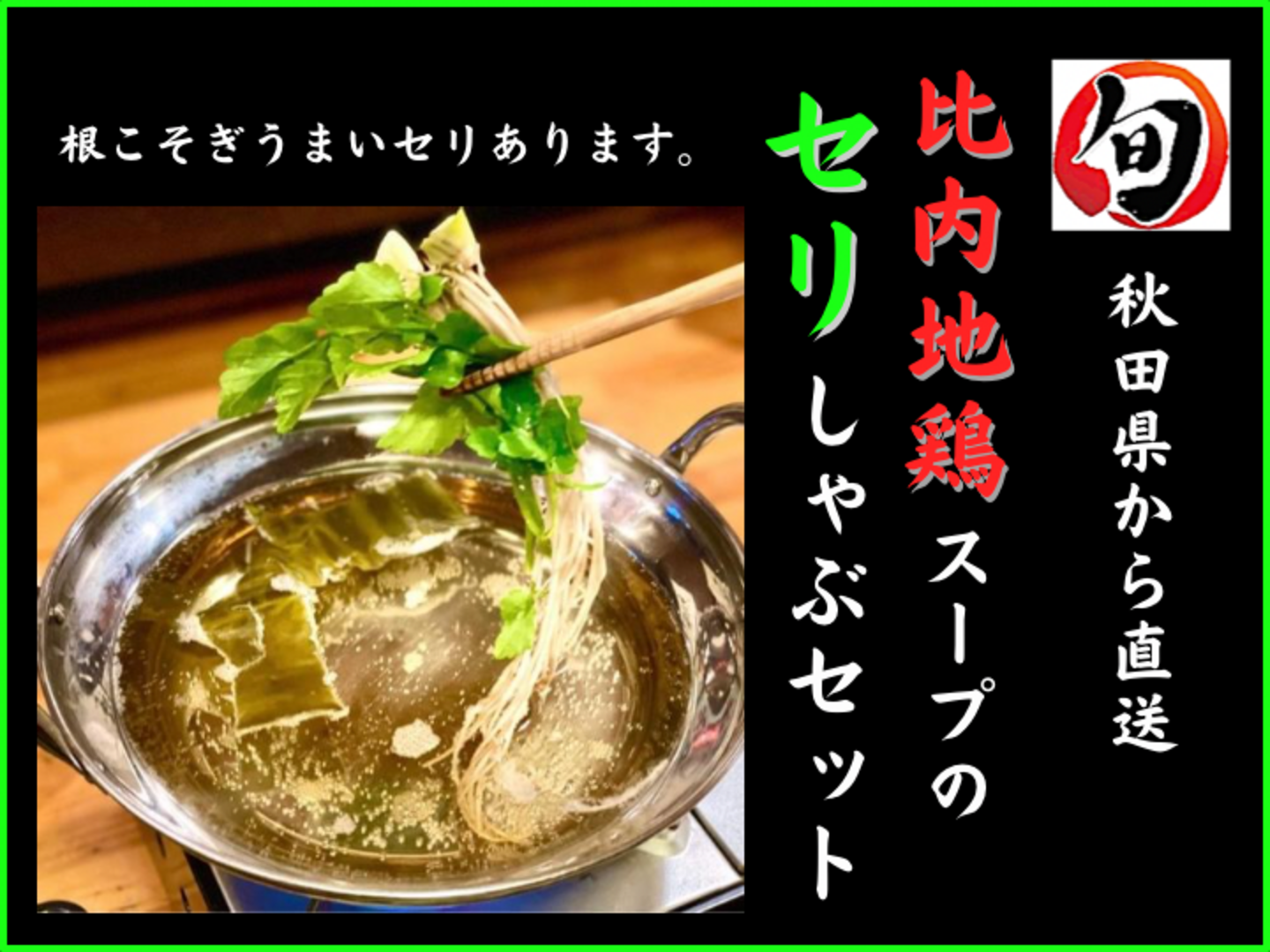 三関セリ5束、比内地鶏スープ2袋、比内地鶏ガラ入りミートボール10玉