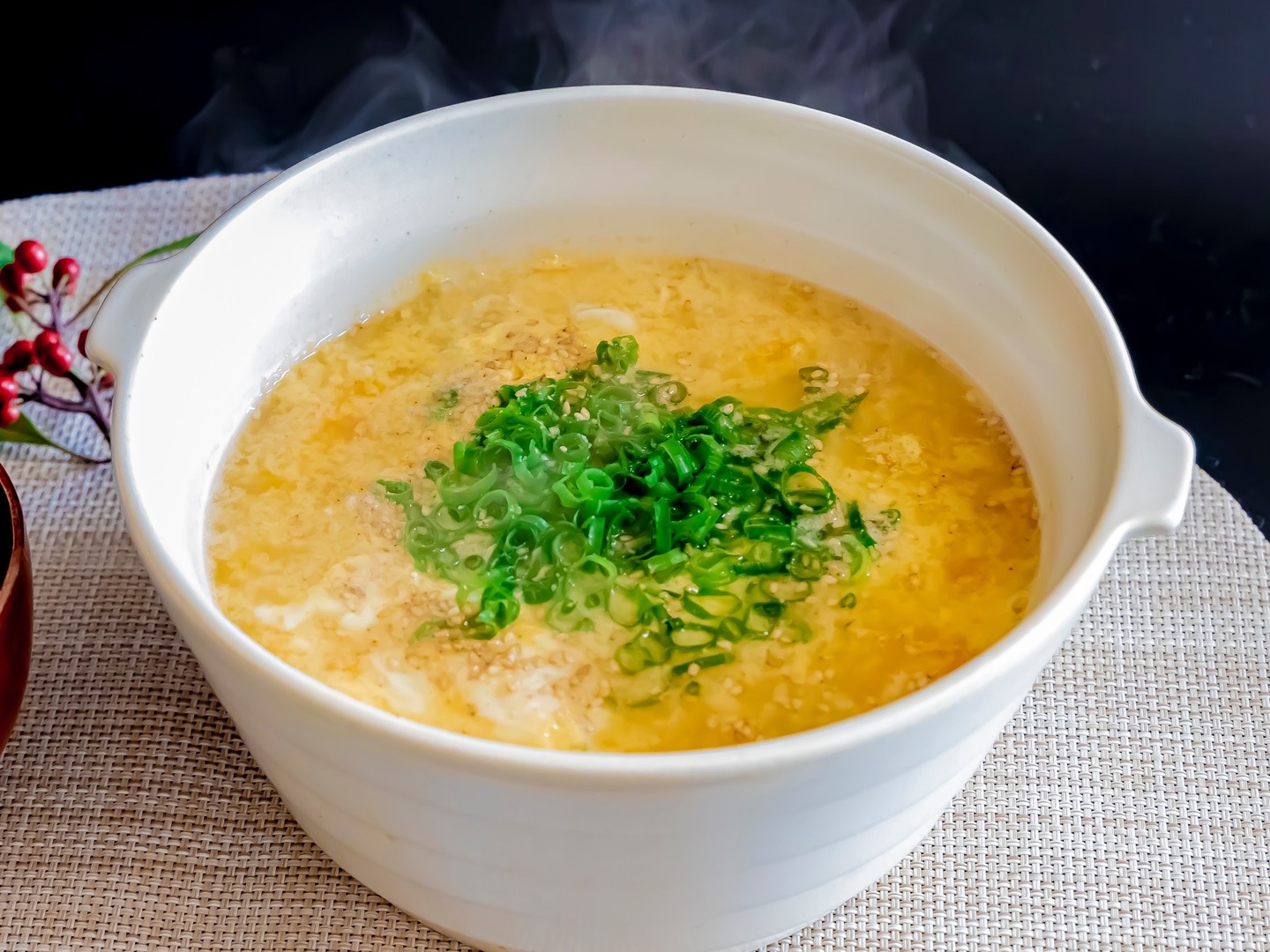 雑炊用の身皮とご飯、卵、お好みでネギや海苔などを入れてお召し上がりください。
