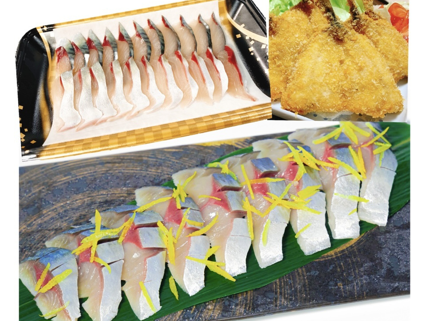 長崎ハーブ鯖刺身1パック・柚子しめ鯖1パック・アジフライ1パック