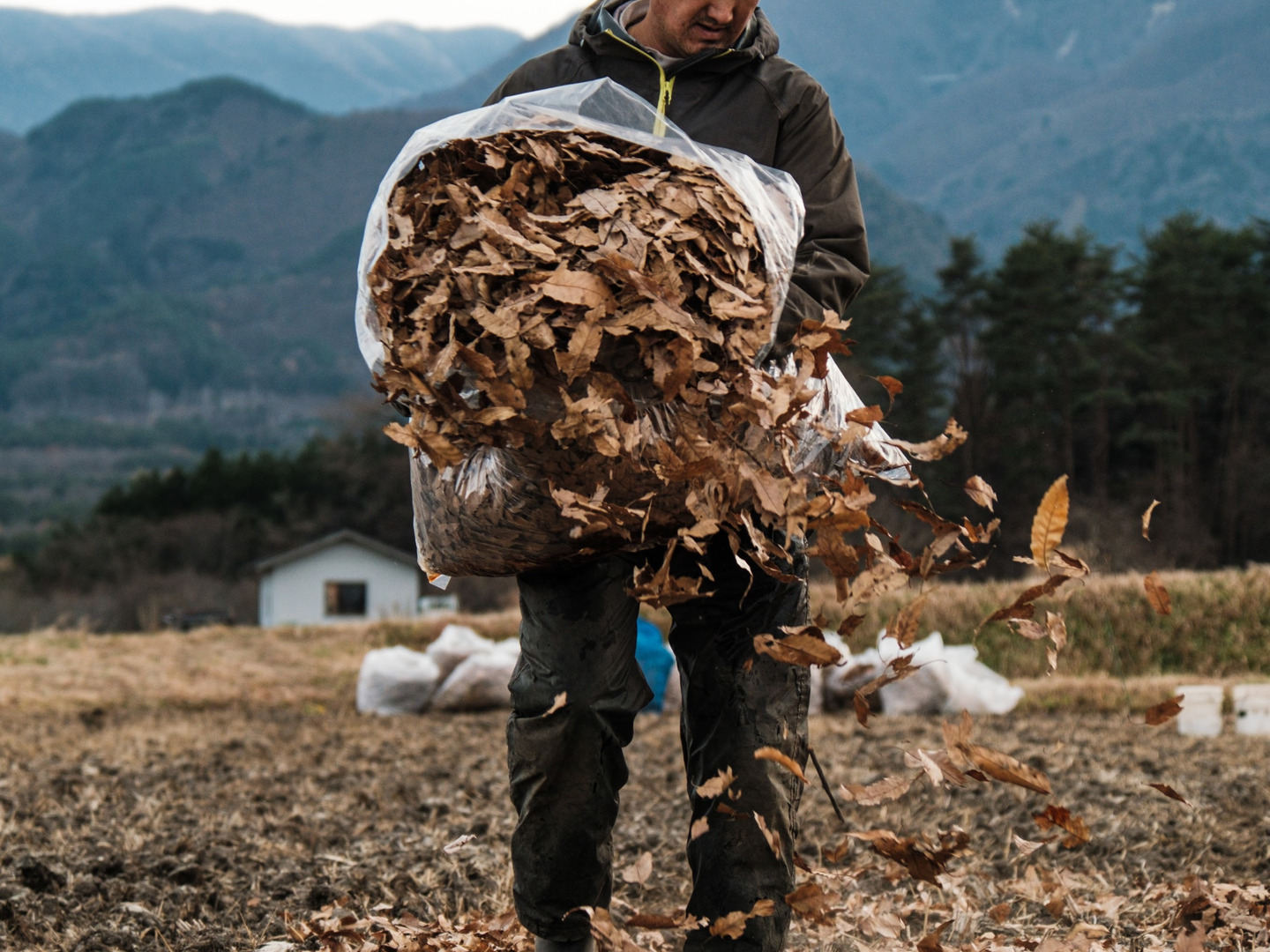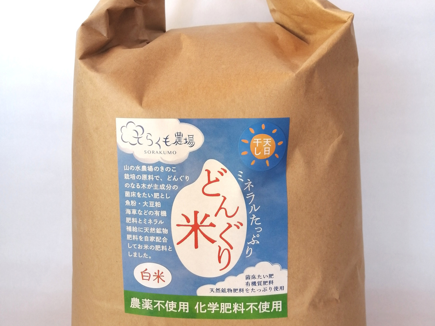 山の水農場のきのこ栽培で使われるどんぐりがなる木が主成分の廃菌床を堆肥とし、魚粉、大豆粕、海藻、米糠などの良質有機肥料とミネラル補給のため、天然鉱物肥料を自家配合してお米の肥料としました。
