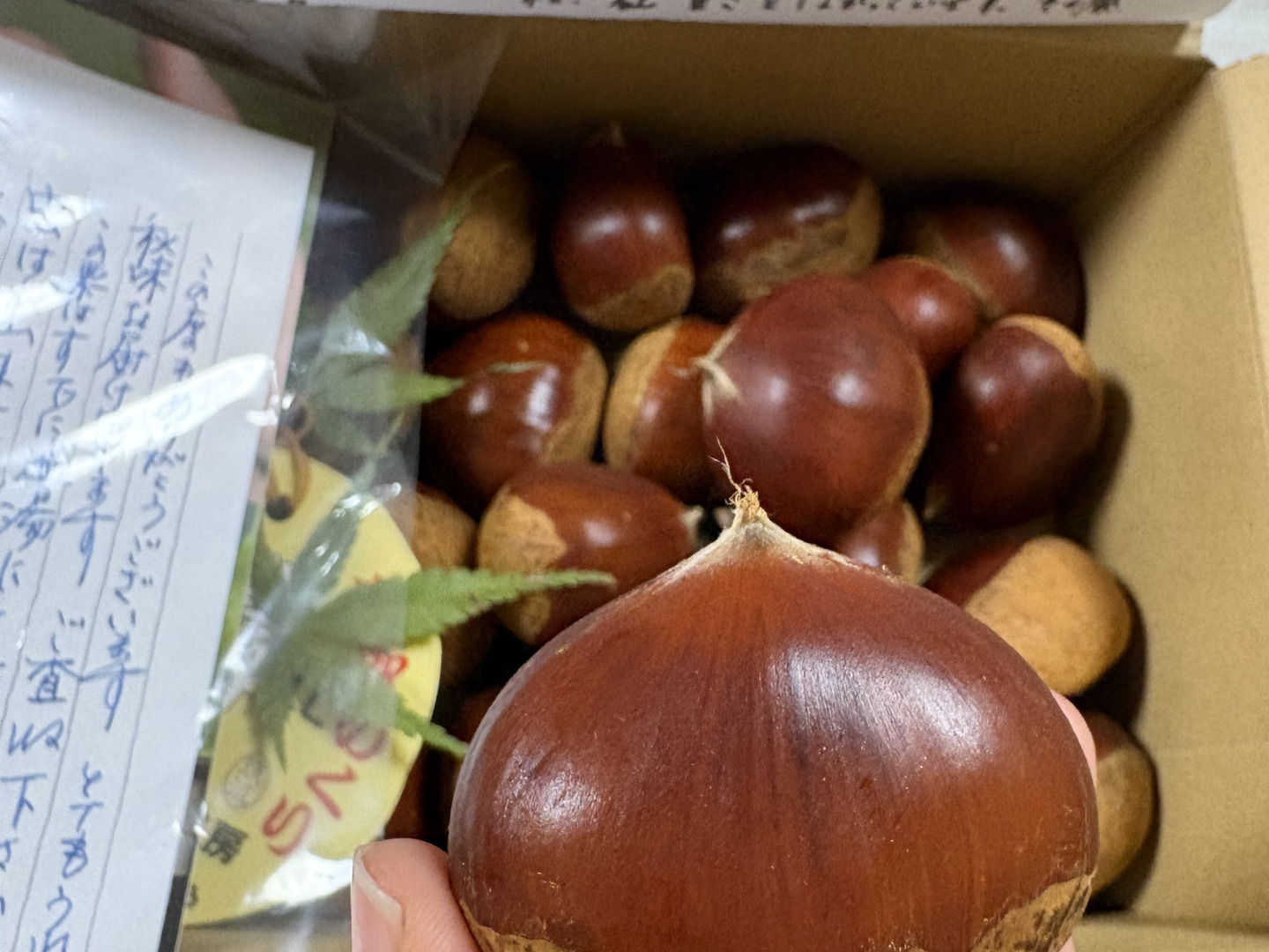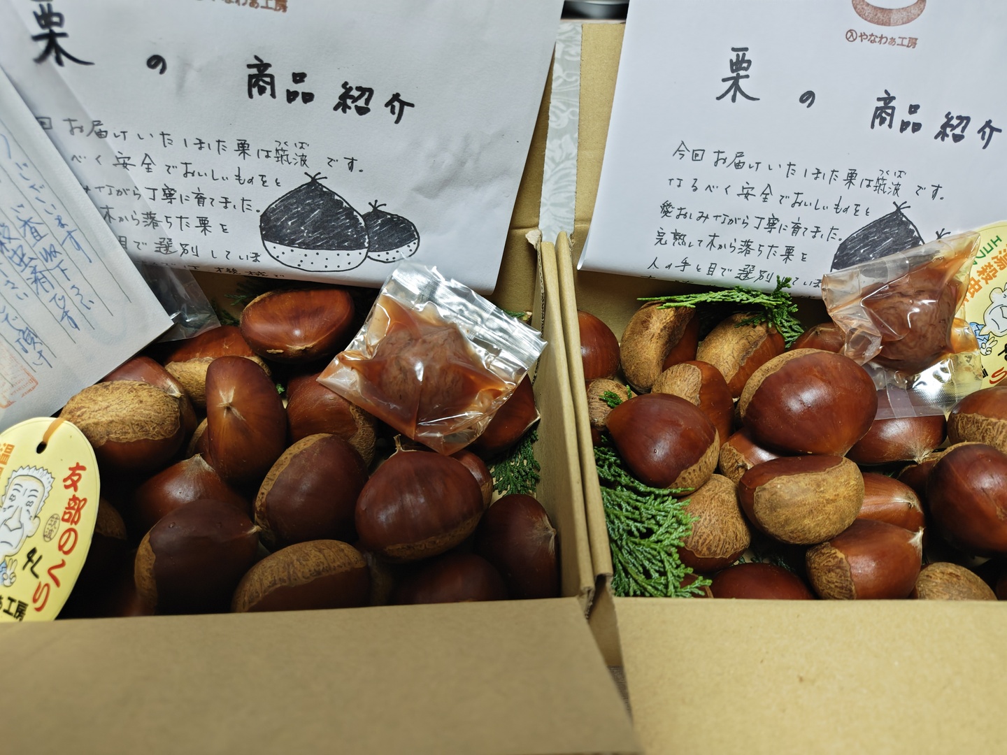 栗は生ものです。品質を下げないためクール便でお送りします。届きましたら冷蔵庫で保存しお早めにお召し上がりください。