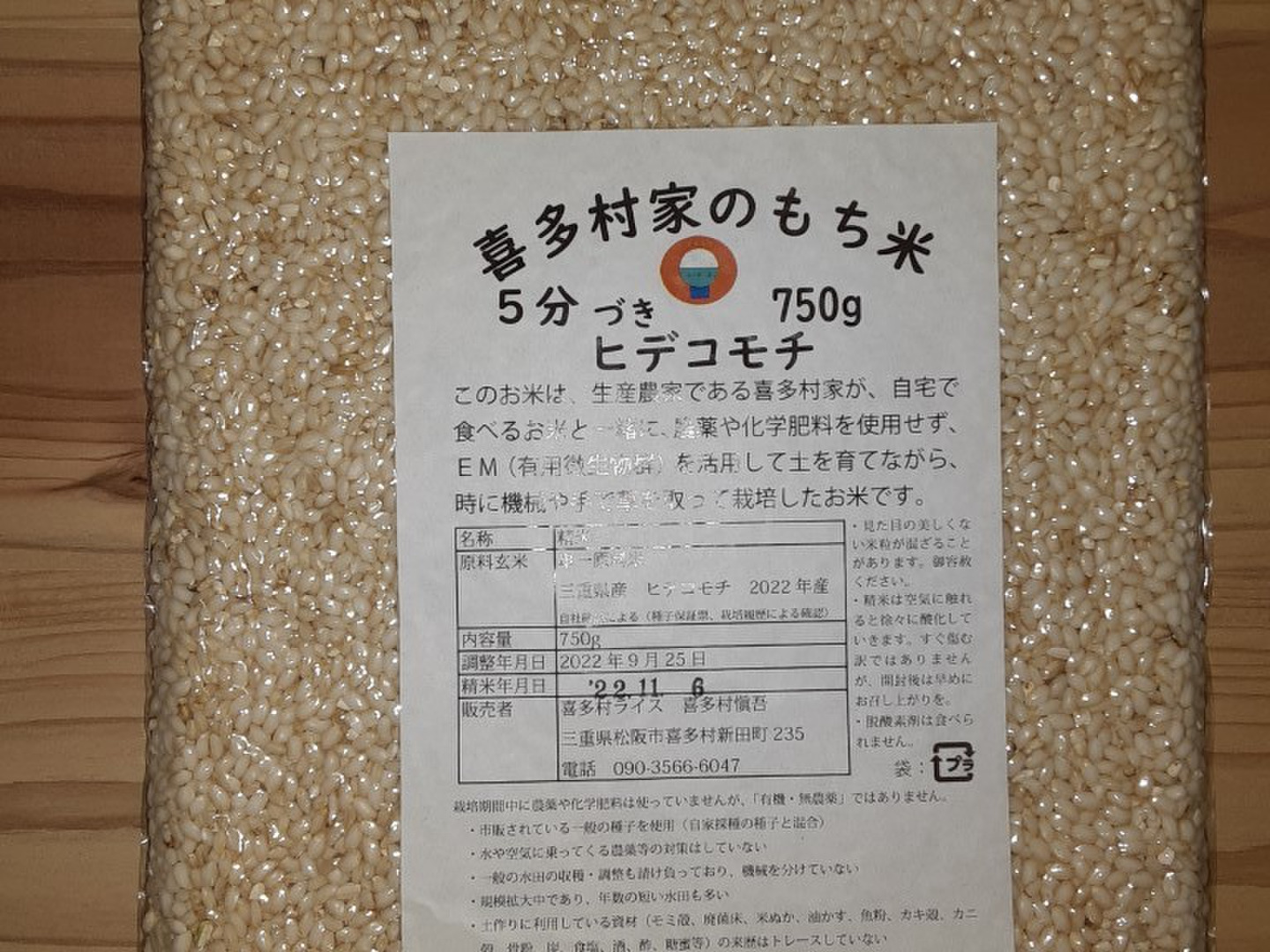 もち米5分づき!喜多村家のもち米 2022年産ヒデコモチ 750g