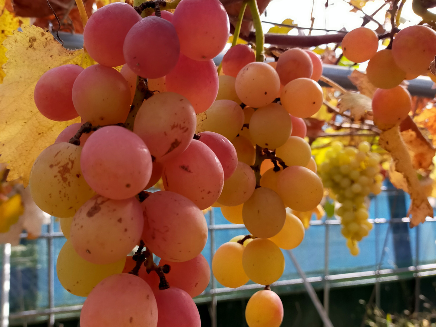 主食はボーボーに生やした雑草やぶどうの落ち葉も好き。おやつ大好き、目の色が変わる!柿はまだ青くて落ちたのでも取り合いに。まだ好きな物は開発中〜とても食べ方が下手クソ。青くても柿が大好きだけどすぐ落とすので、手のひらにのせて食べやすいように動かないように持ってると、手の中でグジュグジュ潰れて手はドロドロ〜。2頭で取り合いになるので、両手同時にあげて両方ともドロドロ〜。先ずはそこらの葉っぱで拭く。