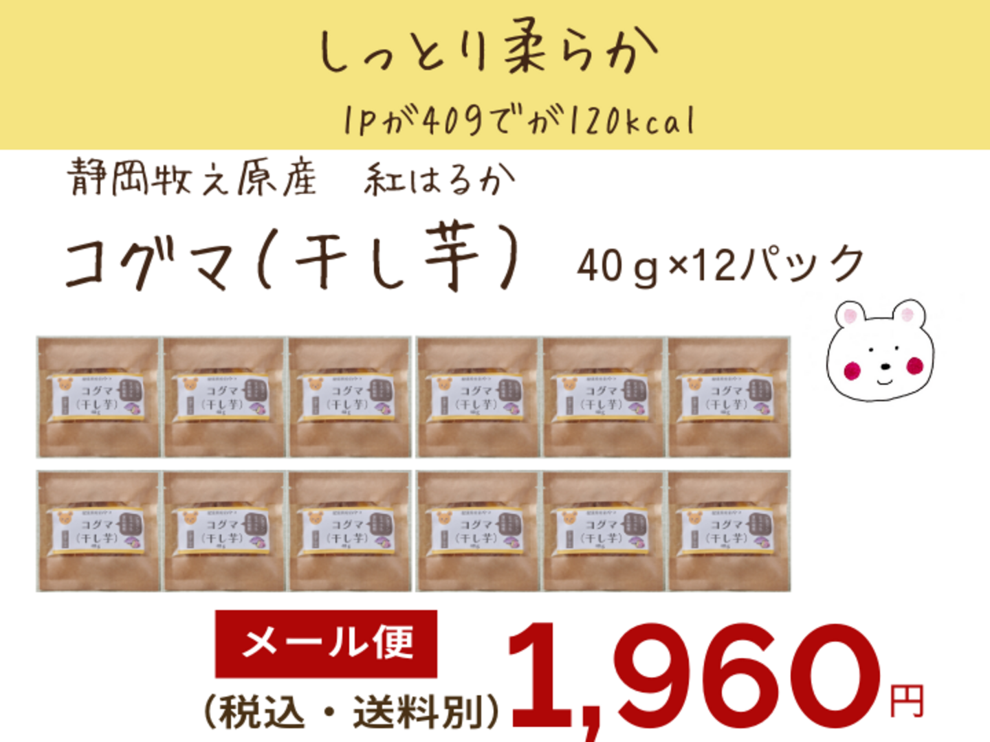 〈発送日12月14日〜〉コグマ干し芋 40g×12パック 紅はるか スティックタイプ静岡県牧之原産 メール便
