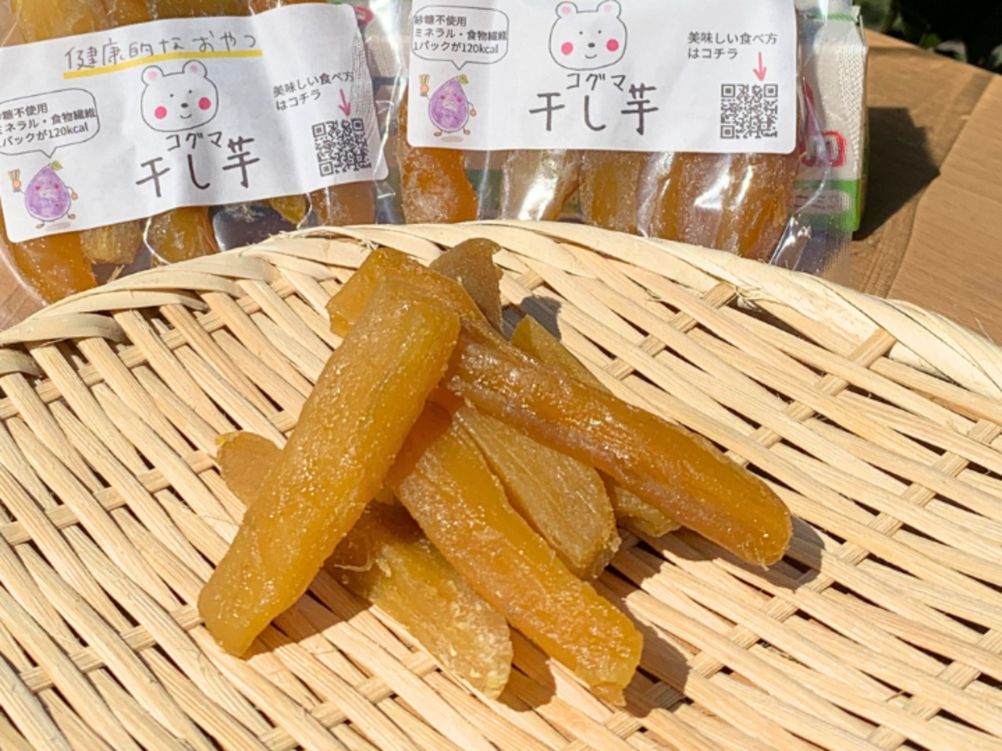 スティックタイプの干し芋は一口サイズで、1袋40g,120kcalと食べきりやすい量。お子様も食べやすいサイズ。