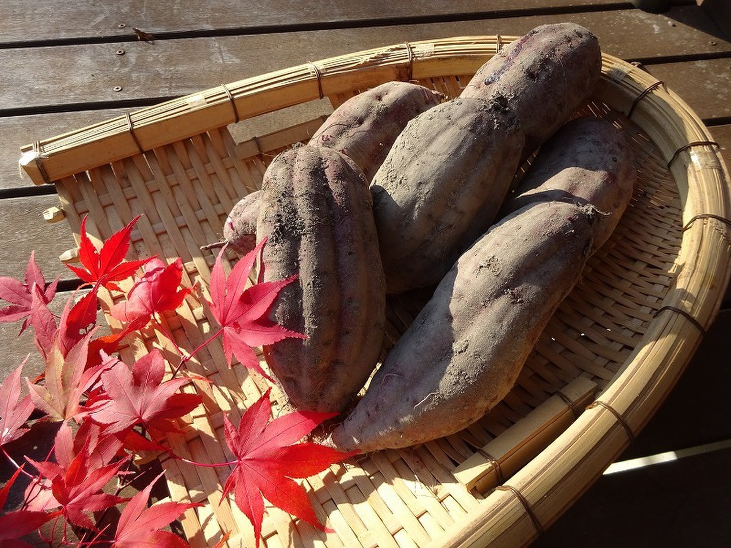 お届けするさつまいもは土付き、軽く掃った程度です。ご使用前にやさしく洗ってください。