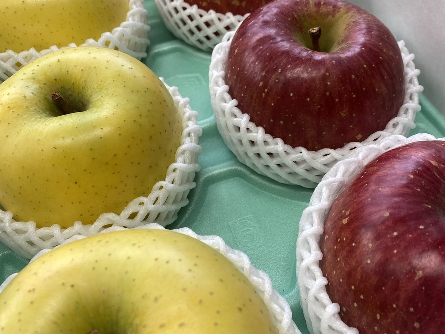 甘みと酸味のバランスが魅力の赤いりんご「サンふじ」と、爽やかな香りが特徴の黄色いりんご「シナノゴールド」の2つの品種の食べ比べセットです。