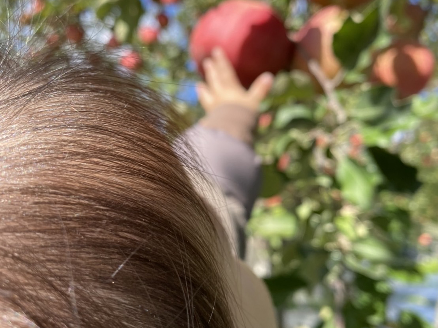 収穫時期を迎えたおいしいりんご「サンふじ」を、