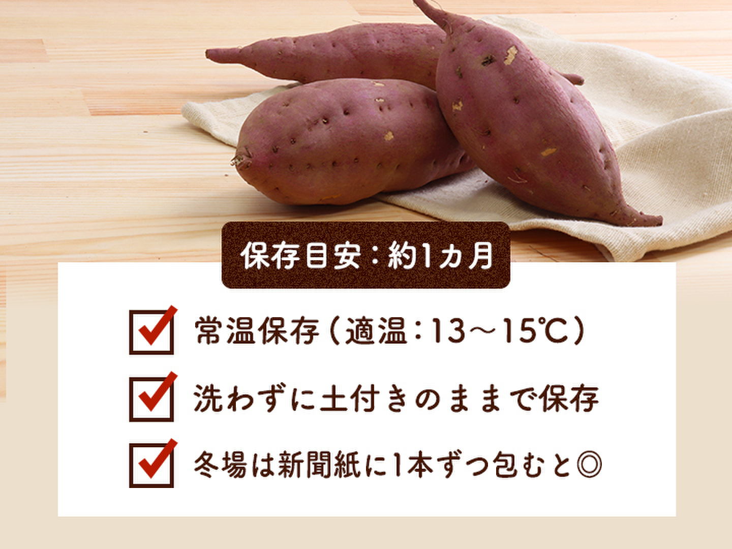 - グッと甘さを引き出すために40日以上貯蔵!