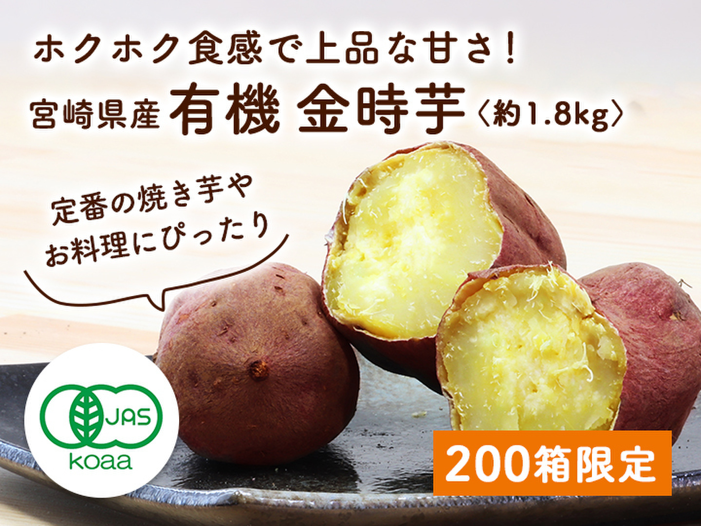 【200箱限定】有機金時芋(1.8kg入) ホクホク食感で上品な甘さ!