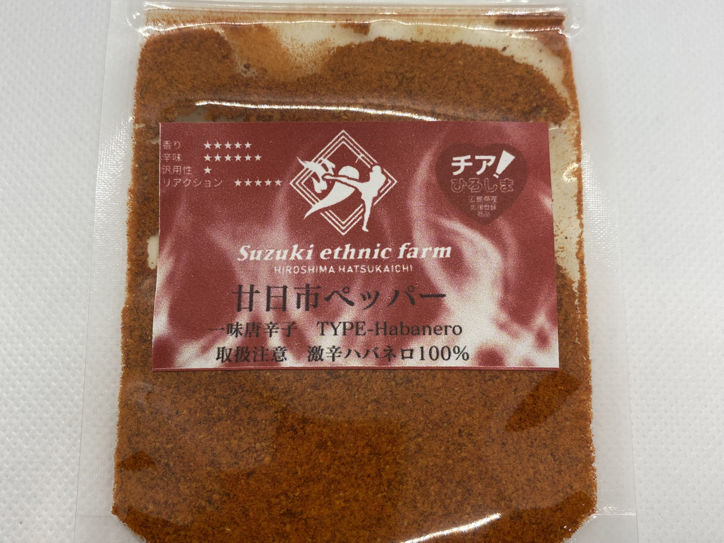 商品について あわせ買い対象 同生産者の別の「あわせ買い対象」商品と一緒にご注文いただくと、送料をまとめてお届けできる場合があります。 生産者からのお知らせ 2022年10月7日 赤唐辛子の受注を再開致します。たくさんのご注文お待ちしております! もっと見る 内容 希少!純国産一味ハバネロ10g【赤】廿日市ペッパー 香りの高さが自慢です 重量・容量 約10g 発送 クリックポスト 送料 ¥ 常温便 + ¥ 0 数量1点ごとに送料が発生します。 種別 加工品 野菜 唐辛子 ハバネロ 産地 広島県 農薬化学肥料不使用 加工品 ビニール包装 ハバネロ 広島県x加工品 広島県x唐辛子 広島県xハバネロ 商品説明 味採れたてフレッシュの生唐辛子を50度48時間で機械乾燥させました。あらゆる料理に合わせられる汎用性の高さが売りです。大変希少な国産ハバネロの一味唐辛子です。香りが非常に高く特徴的です。辛味は言わずもがな、一時はギネス記録となった辛味は健在、少量から少しずつお楽しみください。辛味が強いため、辛味が苦手な方や小さなお子様には特にご注意ください。栽培・生産のこだわり栽培期間中は化学肥料、農薬を使わず栽培しています。牛糞堆肥と石灰をベースとし、追肥は米ぬか発酵肥料に油粕を追加して施しています。自然の力を借り、植物としての力を引き出す栽培を心掛けています。産地の特徴広島県廿日市市佐伯地区にて栽培しています。標高300mを超える地区において昼夜の寒暖の差が激しく、野菜の旨味が強くなるため農業の盛んな地区です。品種の特徴一時はギネス一位の辛さを誇った激辛品種「ハバネロ」です。フルーティな香りの反面、強烈な辛味が特徴です。その味わいは唐辛子先入観を壊し、新たな体験をもたらします。保存方法など高温多湿を避けて涼しい場所で常温保管してください。 もっと見る この商品のことをお友達にもシェアしませんか ポスト シェア