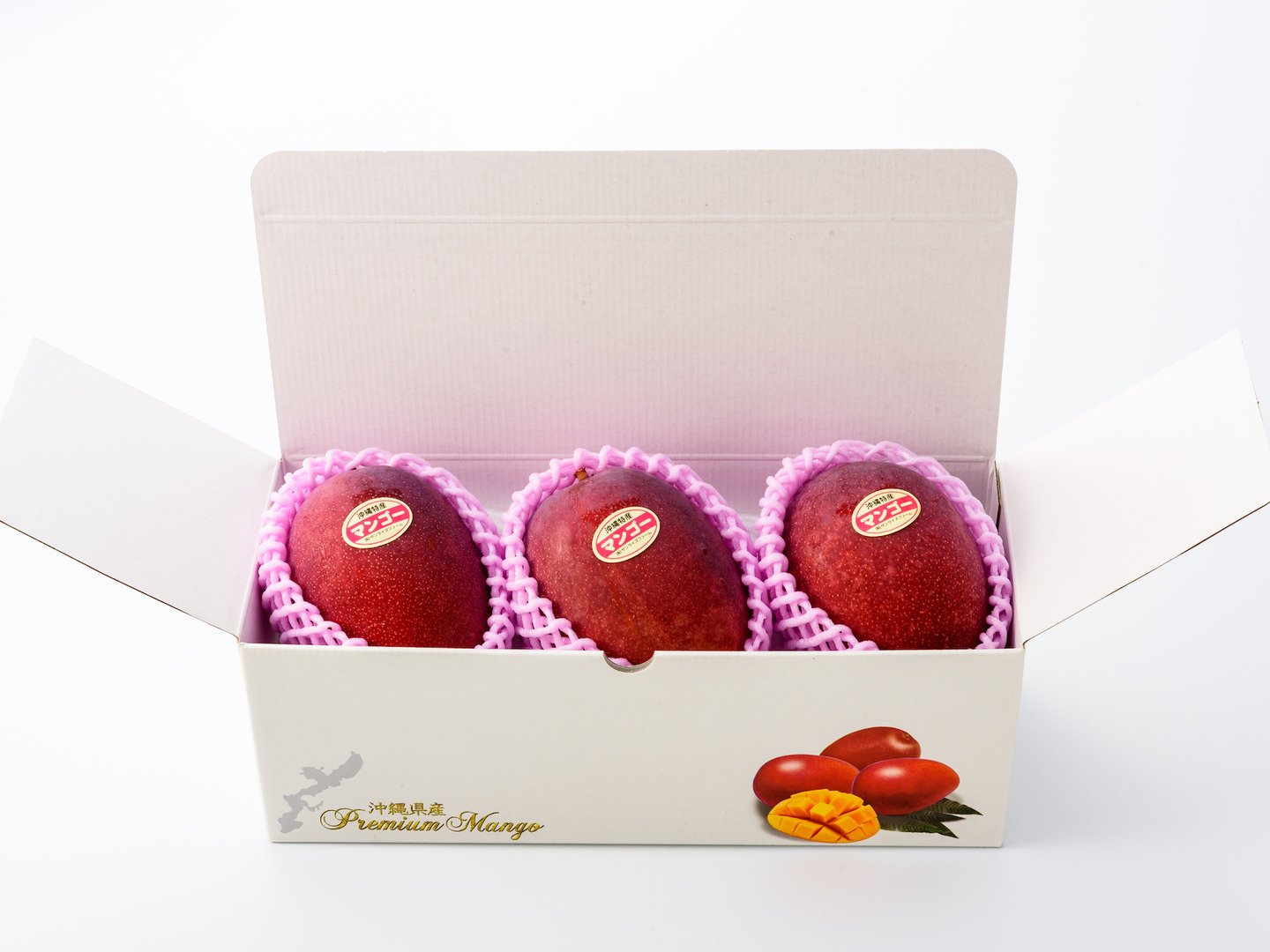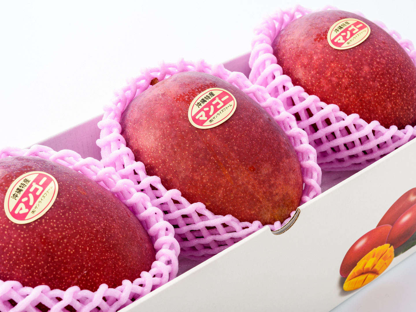 沖縄県本島東海岸に位置する宜野座村の豊かな自然と太陽の下で育ったサンライズファームのマンゴーは、しっかりとした甘さと、なめらかな食感、濃厚な風味が特徴です。