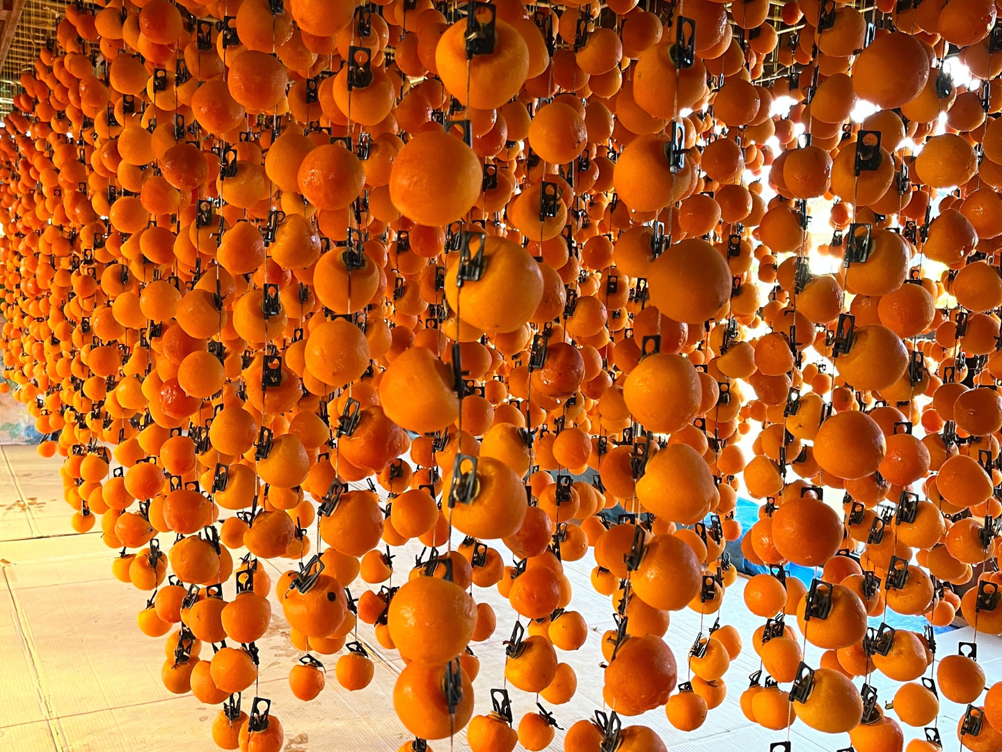 晩秋から初冬にかけての盆地特有の朝晩の厳しい冷え込みと天竜川から立ち上がる川霧がもたらす適度な湿度という南信州特有な気候条件により、ゆっくりと柿を干し上がることにより高品質な干し柿が誕生します。