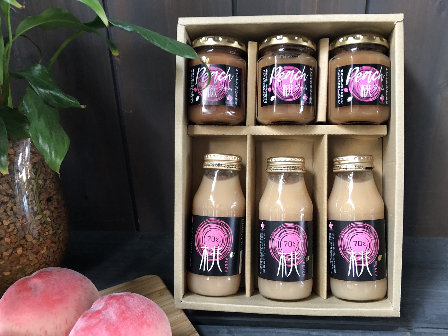 70%桃果汁入飲料180ml×3本・桃ジャム150g×3個