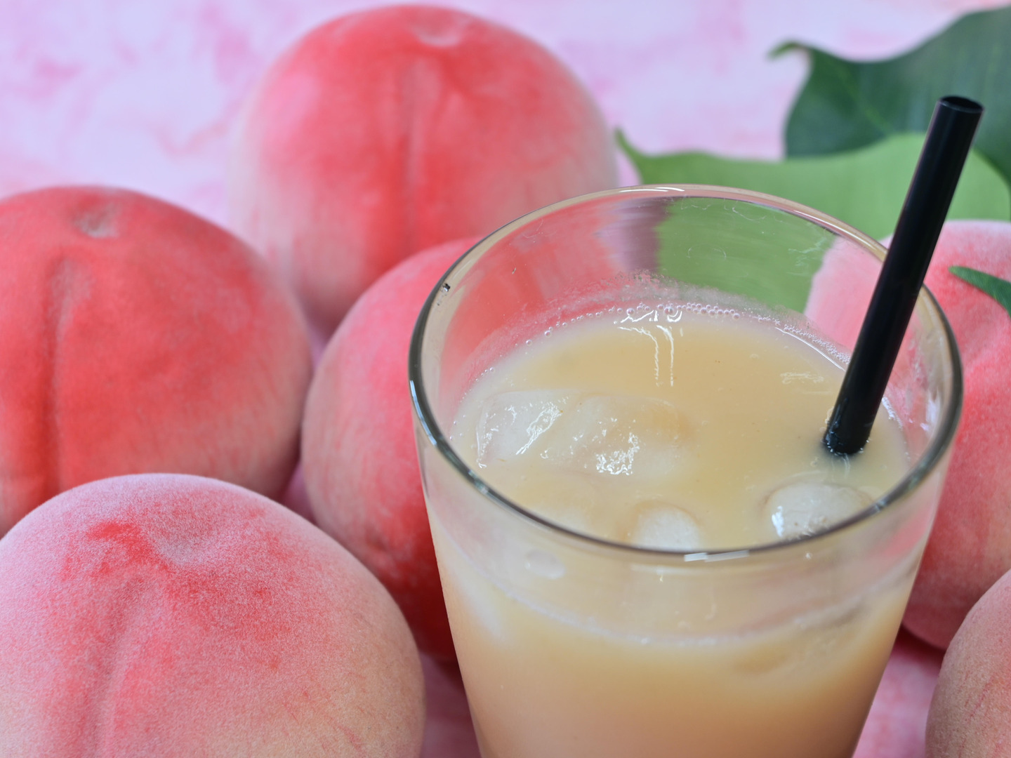 自社農園の完熟した桃で作ったジュースは果汁70%。