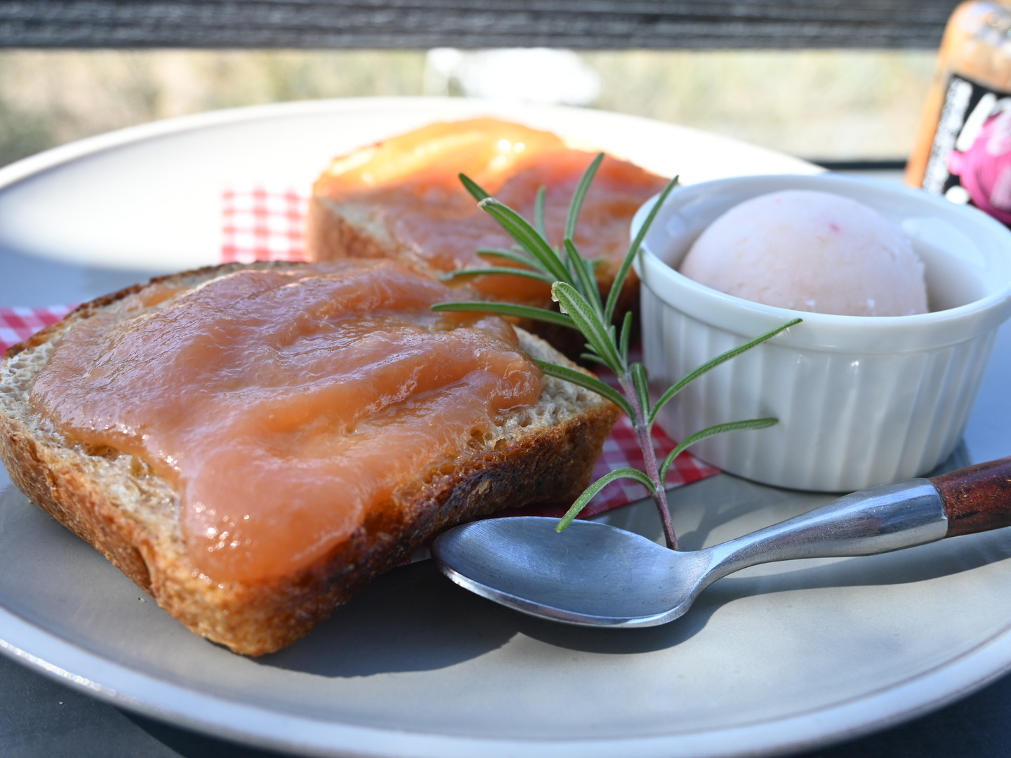 そして一度に飲みやすい180mlジュースと一緒にお届けするのは桃ジャムです。