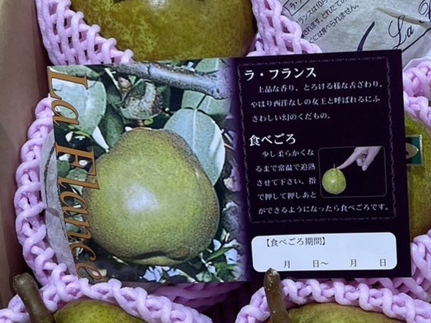 商品について あわせ買い対象 同生産者の別の「あわせ買い対象」商品と一緒にご注文いただくと、送料をまとめてお届けできる場合があります。 生産者からのお知らせ ご購入をご検討のお客様へお知らせ。年末年始を2025年12月30日〜2026年1月5日まで発送業務を休業させていただきます。1月6日より、通常発送致します。 もっと見る 内容 ラ・フランス 訳あり 約5kg 規格外 大きさ無選別 見た目が悪い(表面上、変形など) 生産者都合による規格外 発送 ヤマト運輸(食べチョク特別送料) 送料 ¥ 常温便 + ¥ 0 数量1点ごとに送料が発生します。 種別 果物 洋梨 ラ・フランス 産地 山形県 農薬節約栽培 果物 家庭用 ラ・フランス 山形県x果物 山形県x洋梨 山形県xラ・フランス 規格外 大きさ無選別 大きさは小さいものから大きいものまでバラバラです。 見た目が悪い(表面上、変形など) 鮮度は秀品と変わりありませんが、傷あり、変形、軸あたり、小玉のものや、色づきの悪いもの、大きさ不揃い、になります。梱包はバラ詰めになります。多少の輸送時の押し傷はご理解ください。 生産者都合による規格外 運賃をお安くということを考えて、緩衝材や資材込みで5kg以下(約5kg)になります。 もっと見る 商品説明 山形自慢の洋梨 ラフランス、お得な「訳あり」。鮮度は秀品と変わりありませんが、傷あり、変形、大きさ不揃い。多少の輸送時の押し傷はご理解ください。甘くてトロッとなめらかな食感で美味しい洋梨です。■品名山形県産 ラ・フランス 訳あり約5kg(18〜25玉)※緩衝材等も込みで約5kgになります。・食べ頃目安の説明書付■ラ・フランス注意事項※軸周りにシワが出始めたら食べ頃です。※常温にて保管をお願いします。※長期保存を行いたい場合は、新聞に包んで冷蔵庫などへ入れていただけると日持ちします。■注意事項北海道への12月1月の発送は凍結防止の為、冷蔵便での発送となります。クール代金(220円)は注文後、追加となります。■栽培/生産方法、こだわり「安全で安心、美味しい」を第一に、肥料は全て「天然由来」のもののみを使用し、 健康的に植物が育つアミノ酸肥料を使用しています。・農薬節減使用回数:当地比5割減、散布料:10a基準値より50%減。農薬を使用しない分、健全で旺盛な樹木を育てる為に、葉面散布でアミノ酸肥料を散布しています。散布は、基準10a辺り500lを→200l程に減らして散布してます。・栽培期間中、化学肥料(窒素成分)不使用。微生物中心の栽培を心がけ、土、木、果実に健全な果物作りをしています。※資材は変更になる場合がございますので予めご了承ください。 もっと見る この商品のことをお友達にもシェアしませんか ポスト シェア