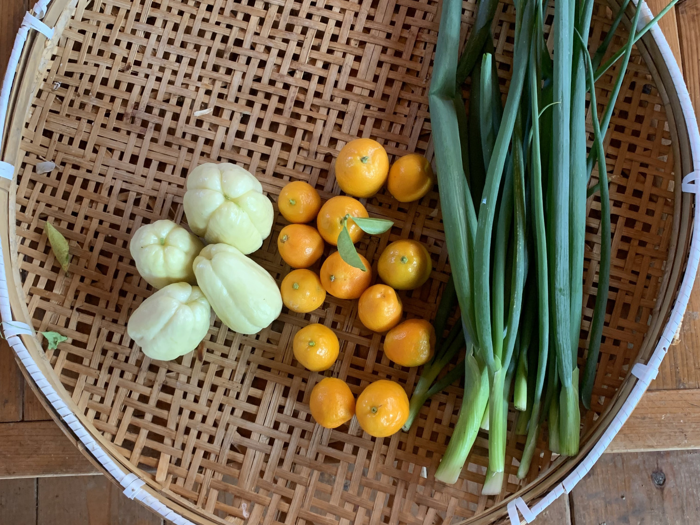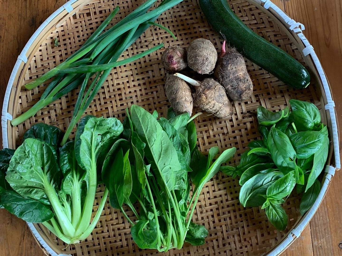 ①ほうれん草②パクチー③ズッキーニ④野沢菜⑤紅心大根⑥小カブ⑦九条ネギ⑧はやとうり⑨レモン⑩ターサイ①①里芋①②バジル①③キンカン①④柚木①⑤ミニニンジン①⑥白菜