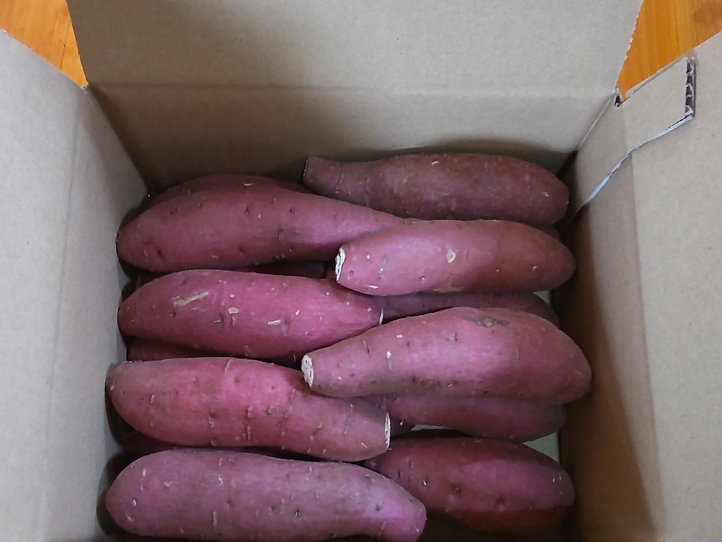 100~150g程度の小さなお芋を沢山ダンボールに詰めています。