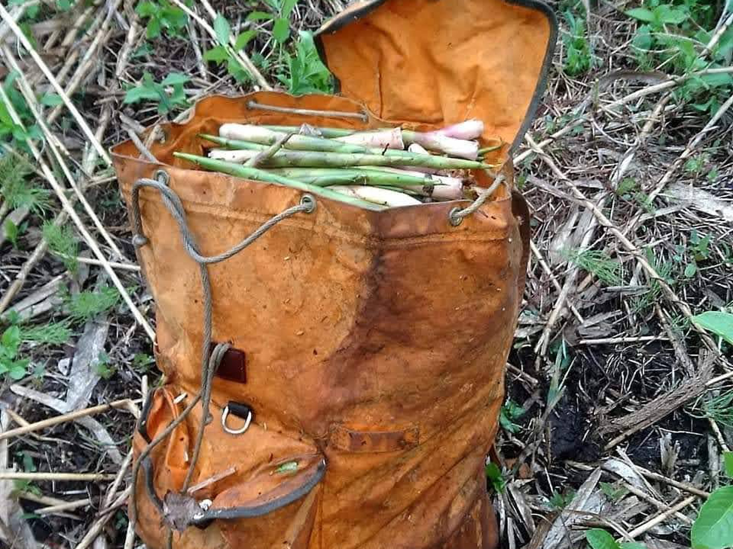 まだ夜明け前の3時に出発し、ヘッドライトと熊よけ鈴をもって片道3時間の山道を進みます。夜明け同時に収穫を始めるのは、一番おいしい時間を逃さないため。拘っています!